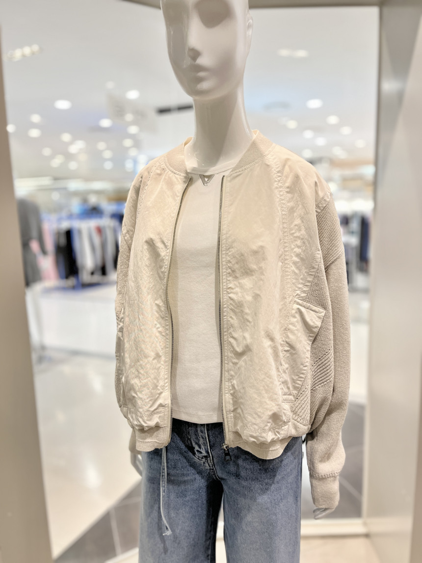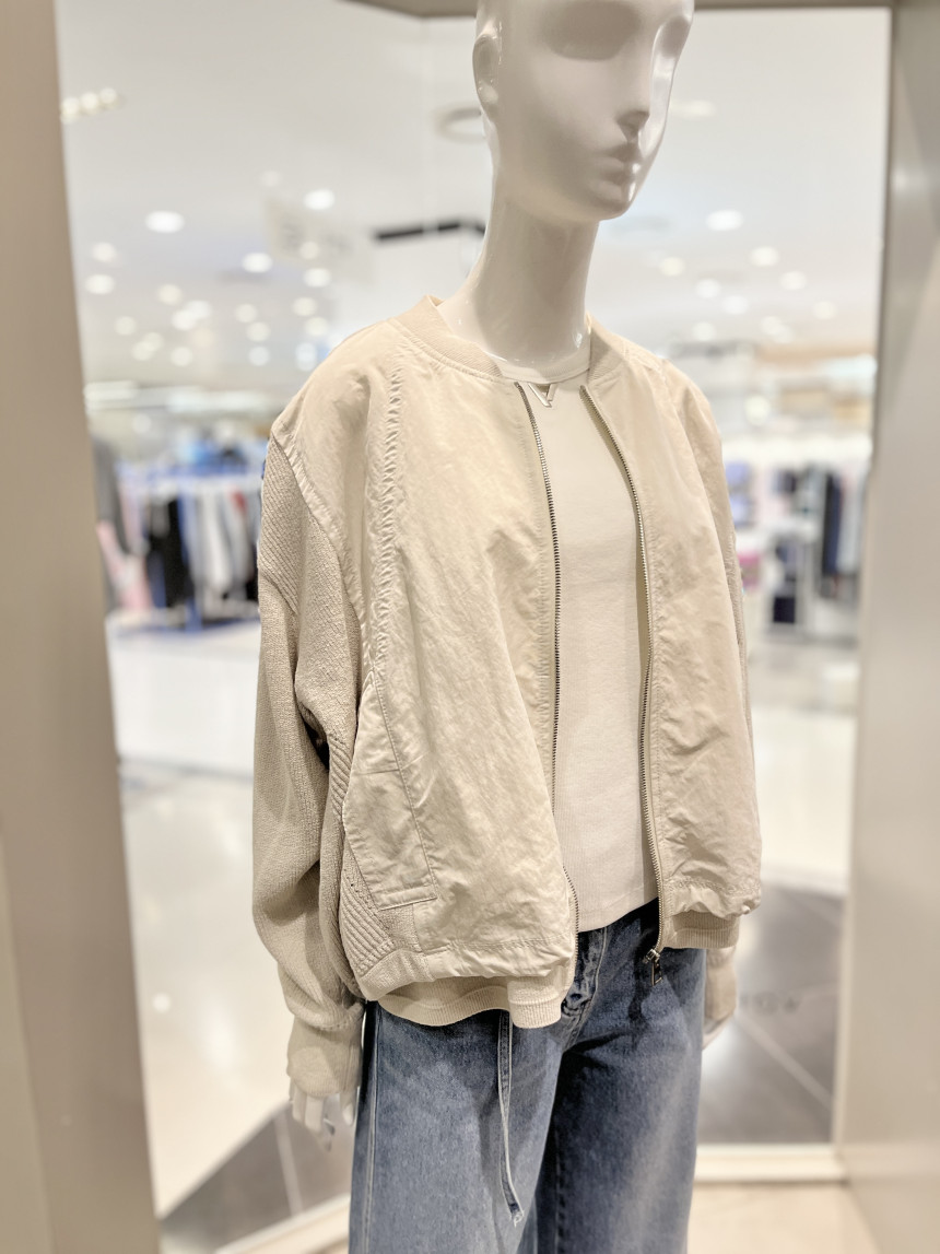 블루종 넥선과 아노락 소재가 트렌디한 디자인으로