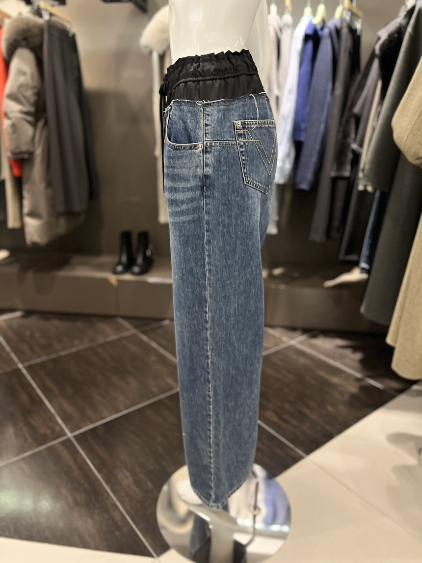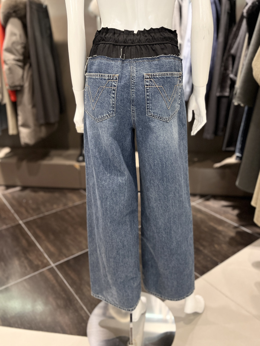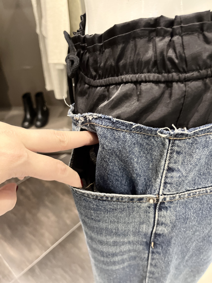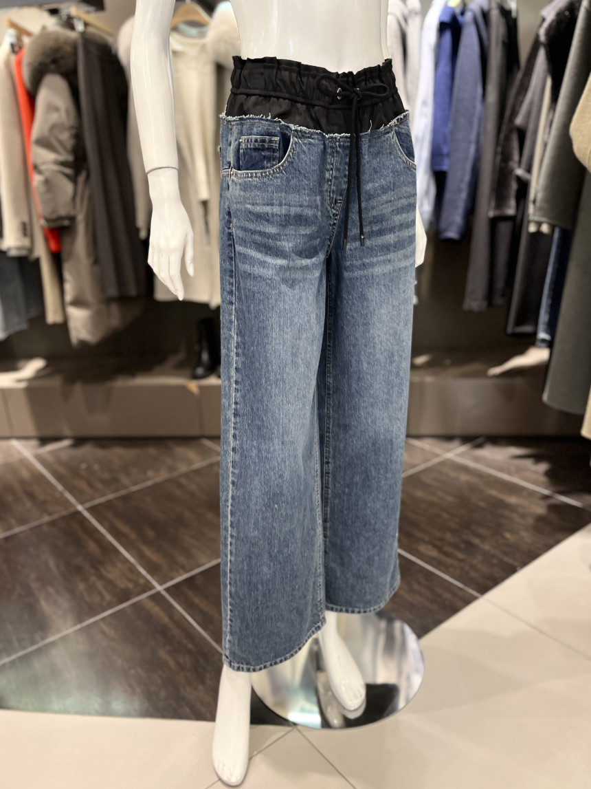 윗면 나일론 소재의 텍스처를 블록하여 스타일리시한 디테일을 더하는 데님 팬츠입니다.