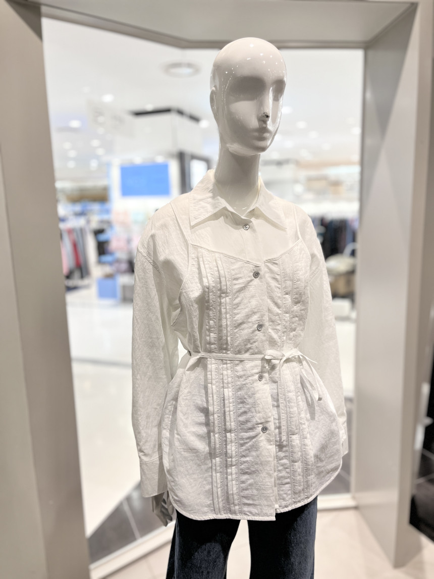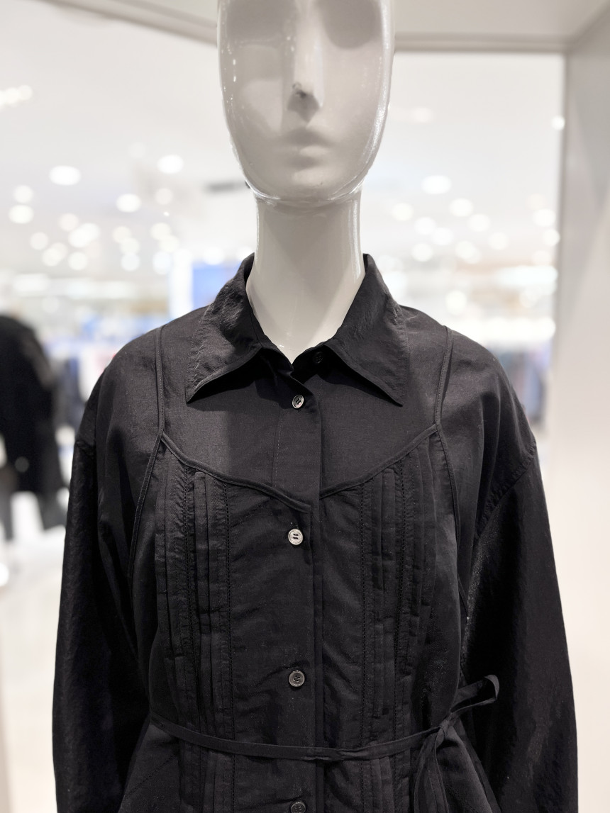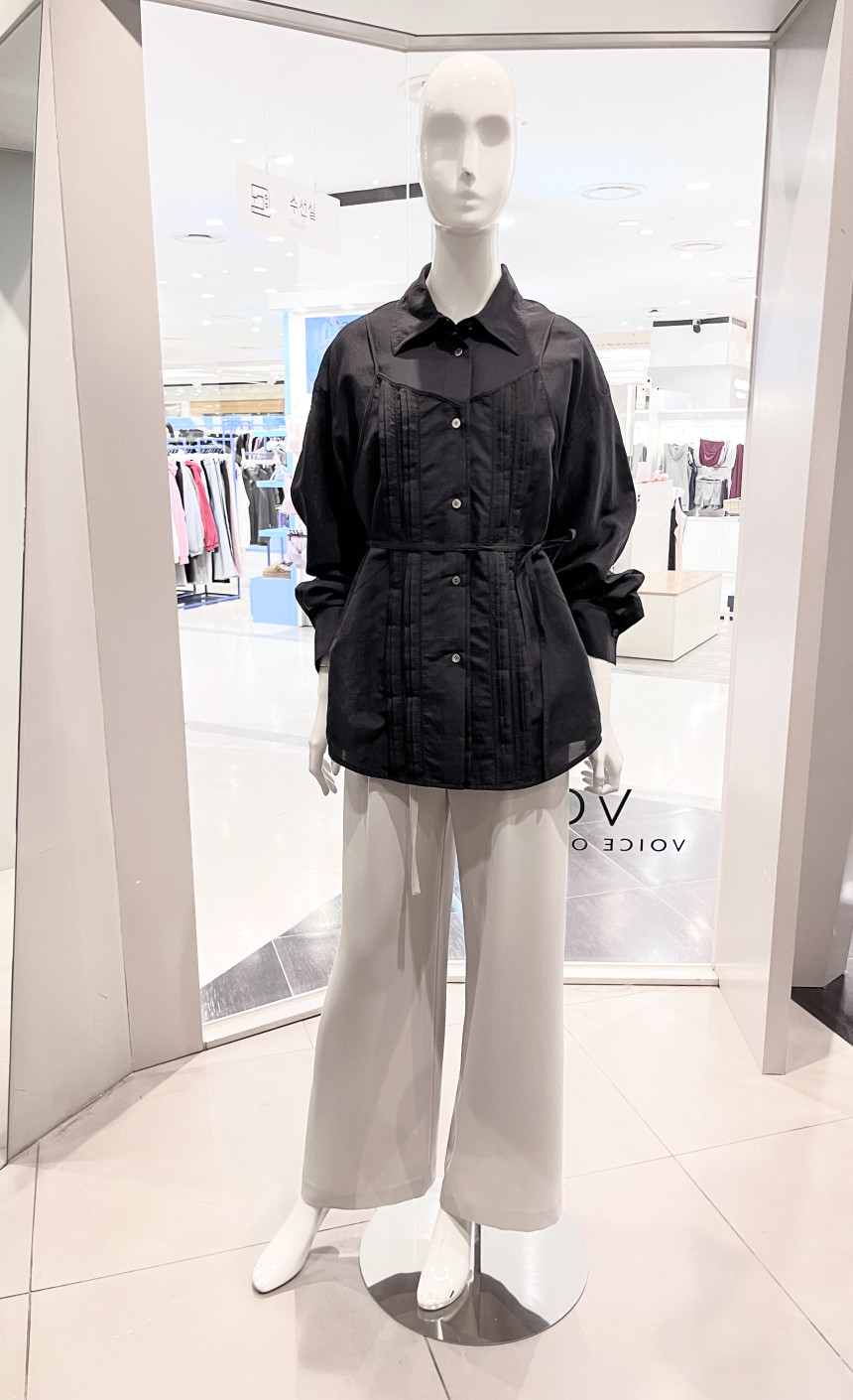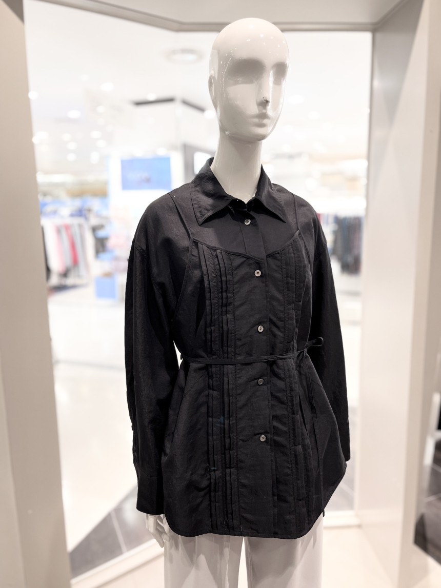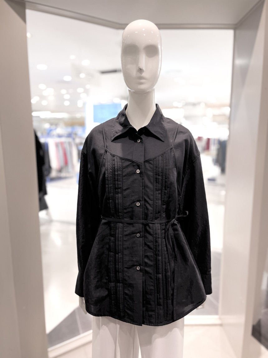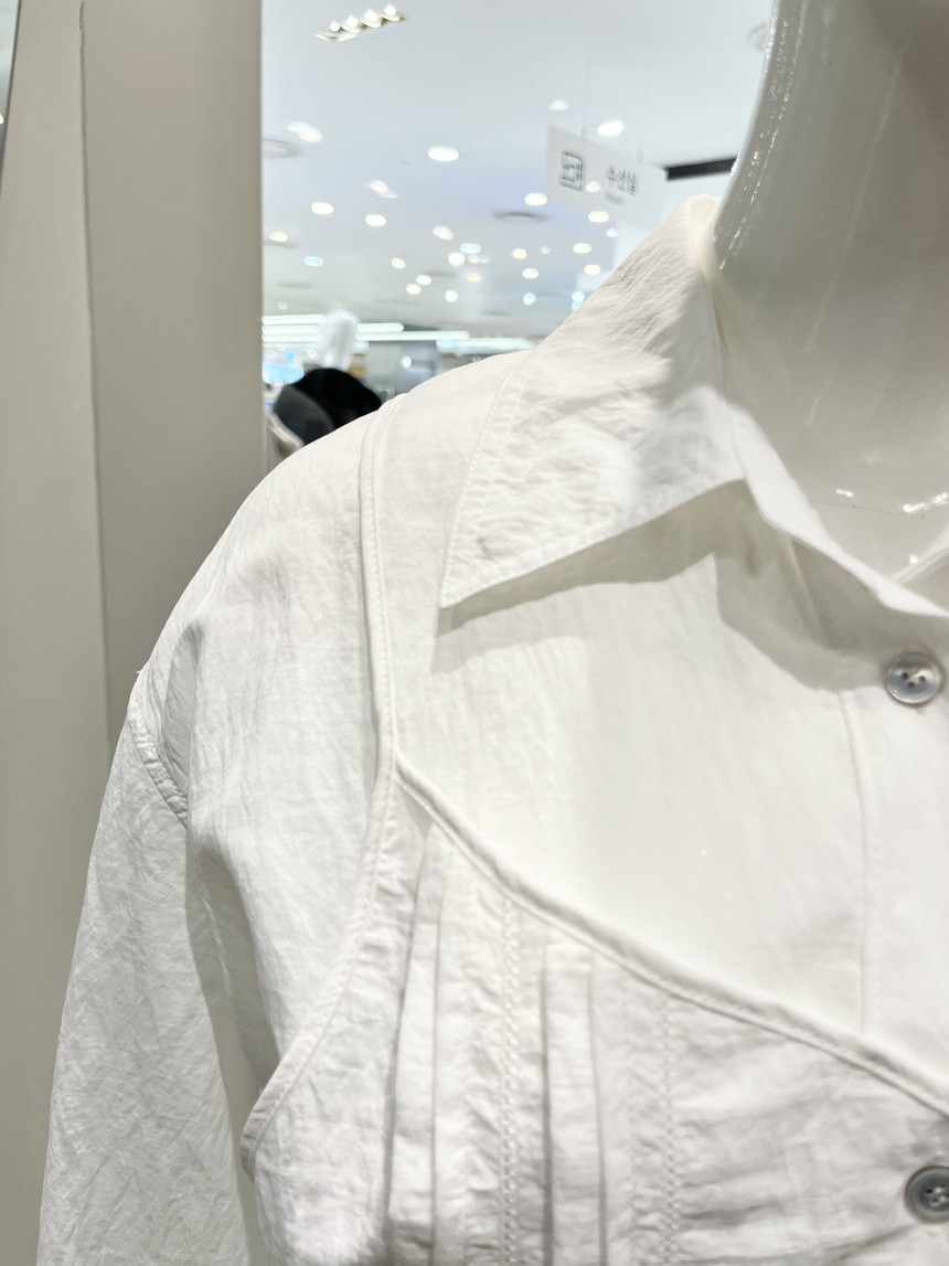핀턱 디테일과 뒷판은 셔링으로 우아하고 페미닌한 느낌을 더해주며,
