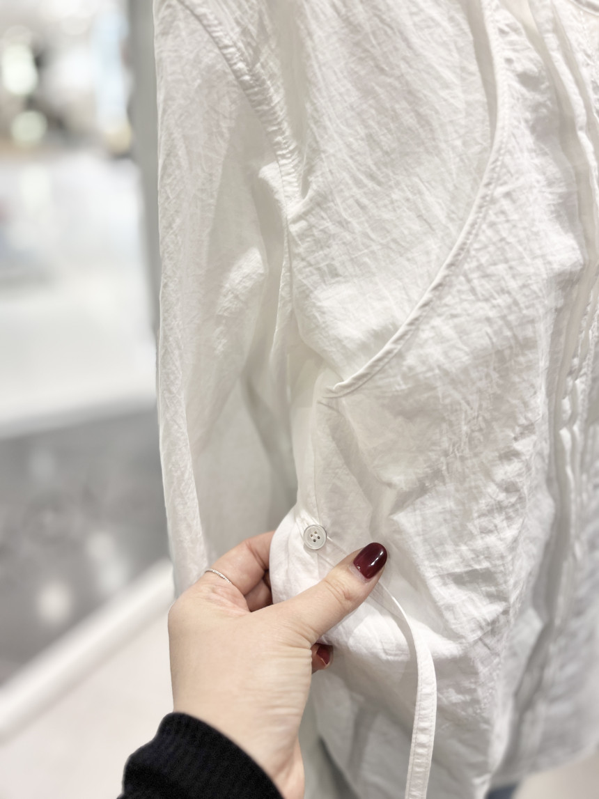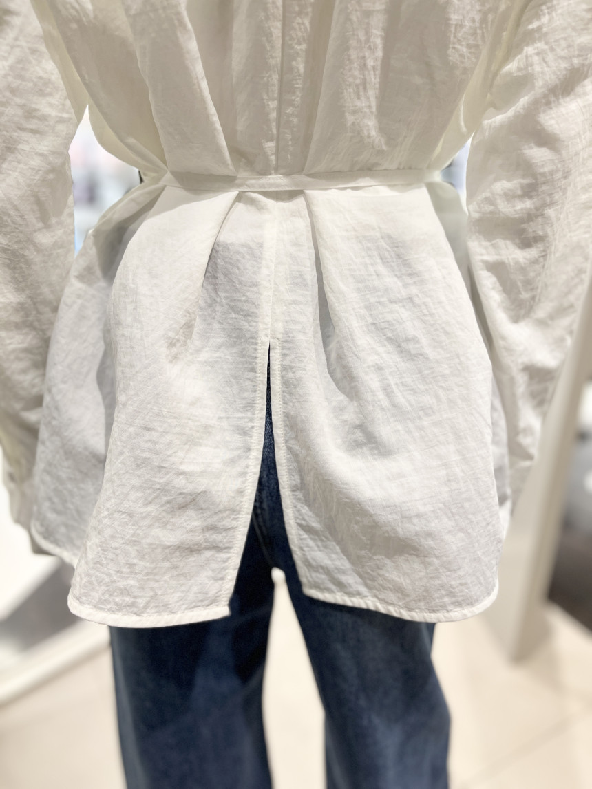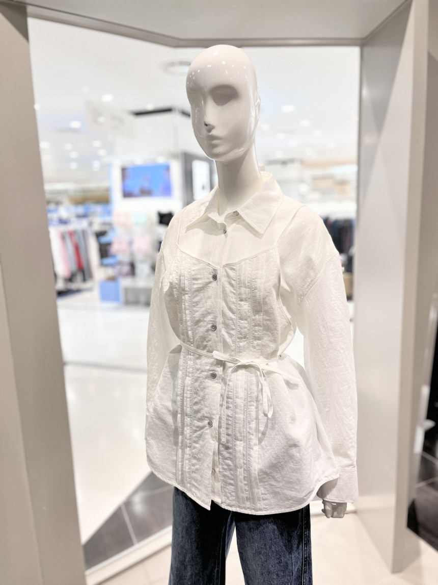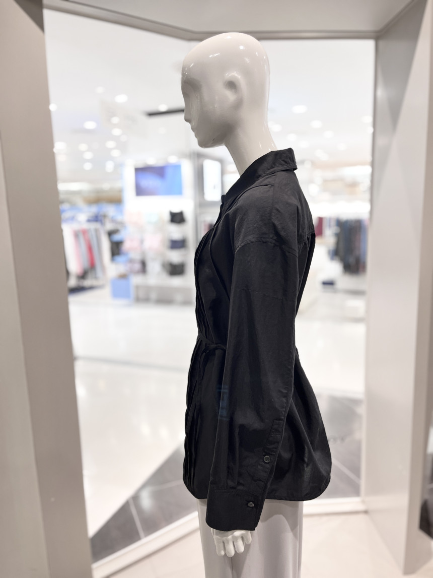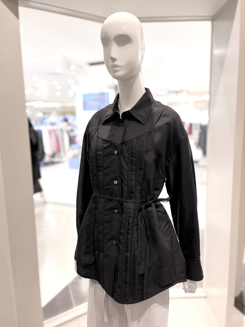핀턱 디테일과 뒷판은 셔링으로 우아하고 페미닌한 느낌을 더해주며,