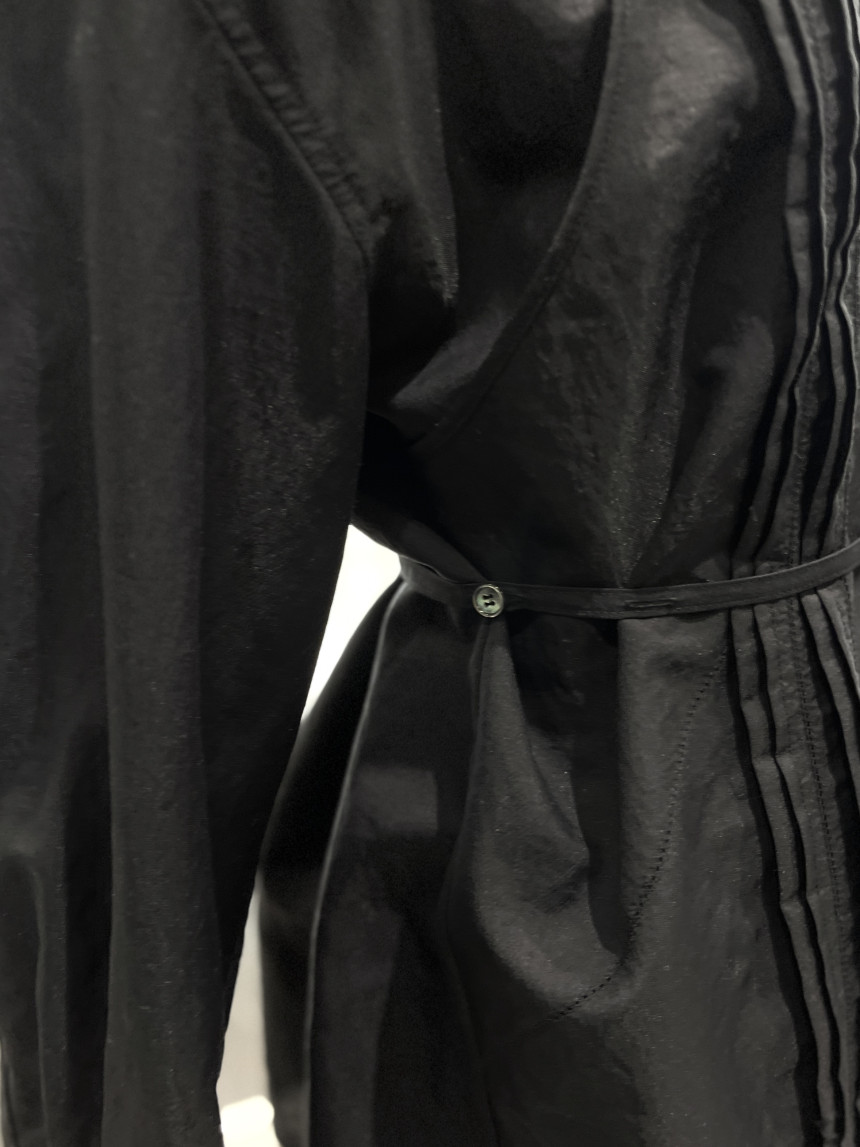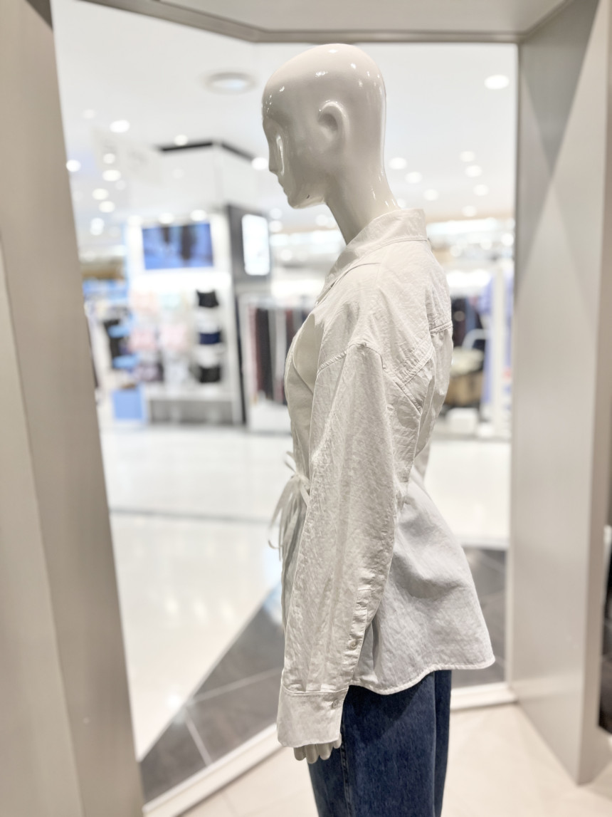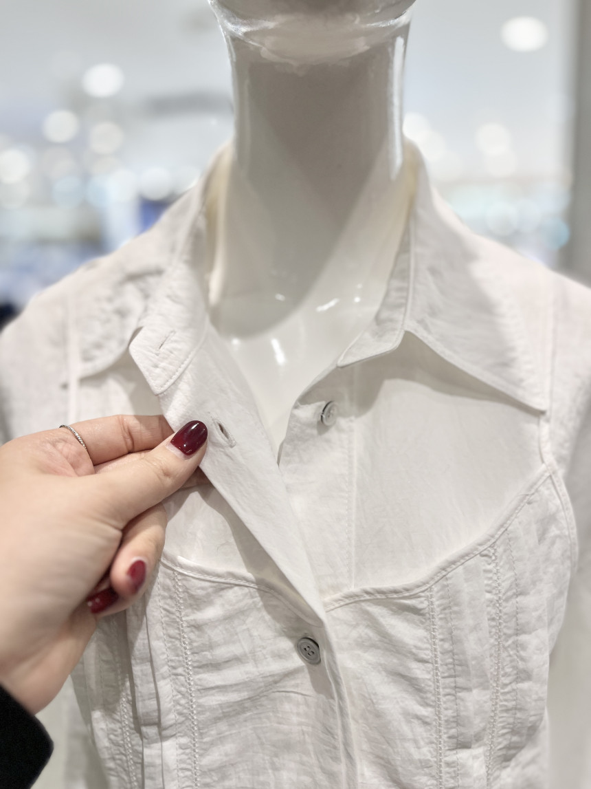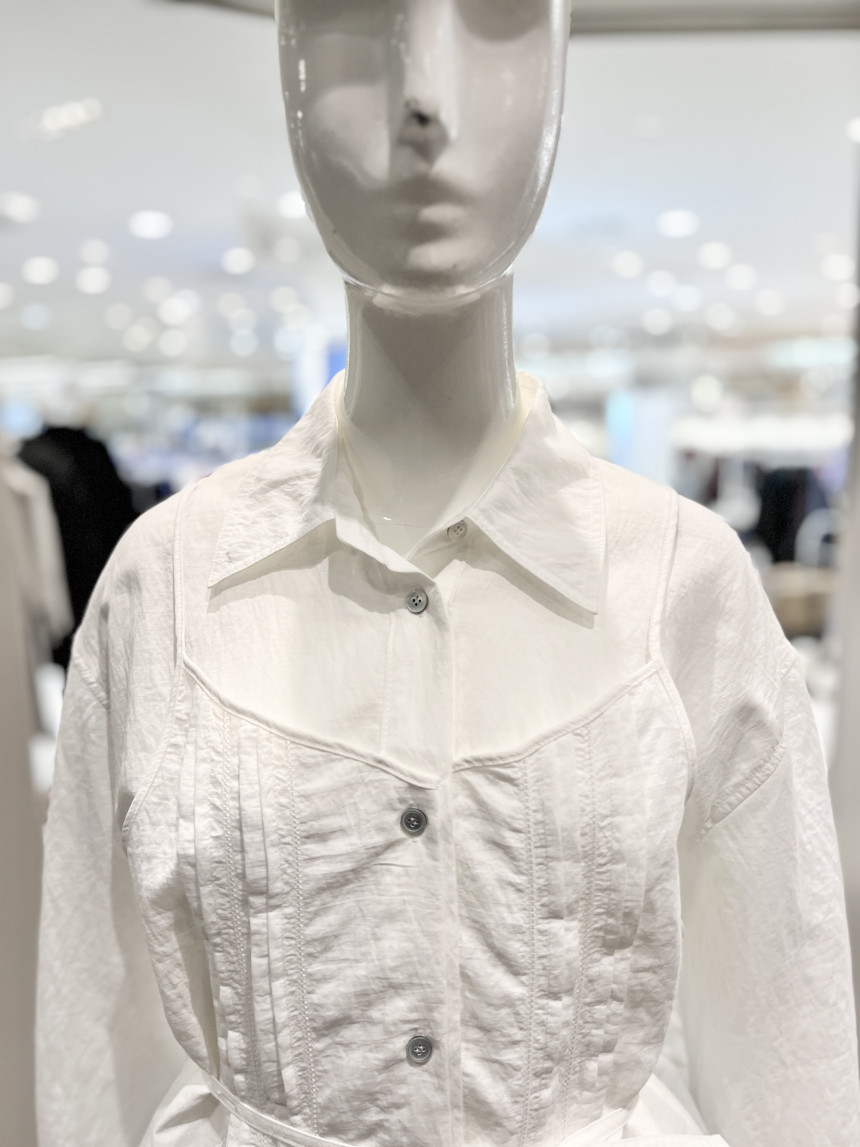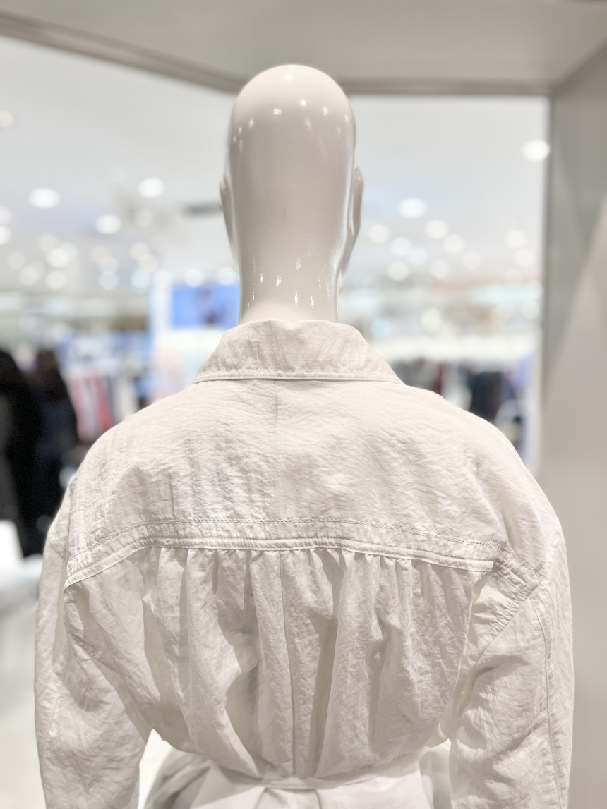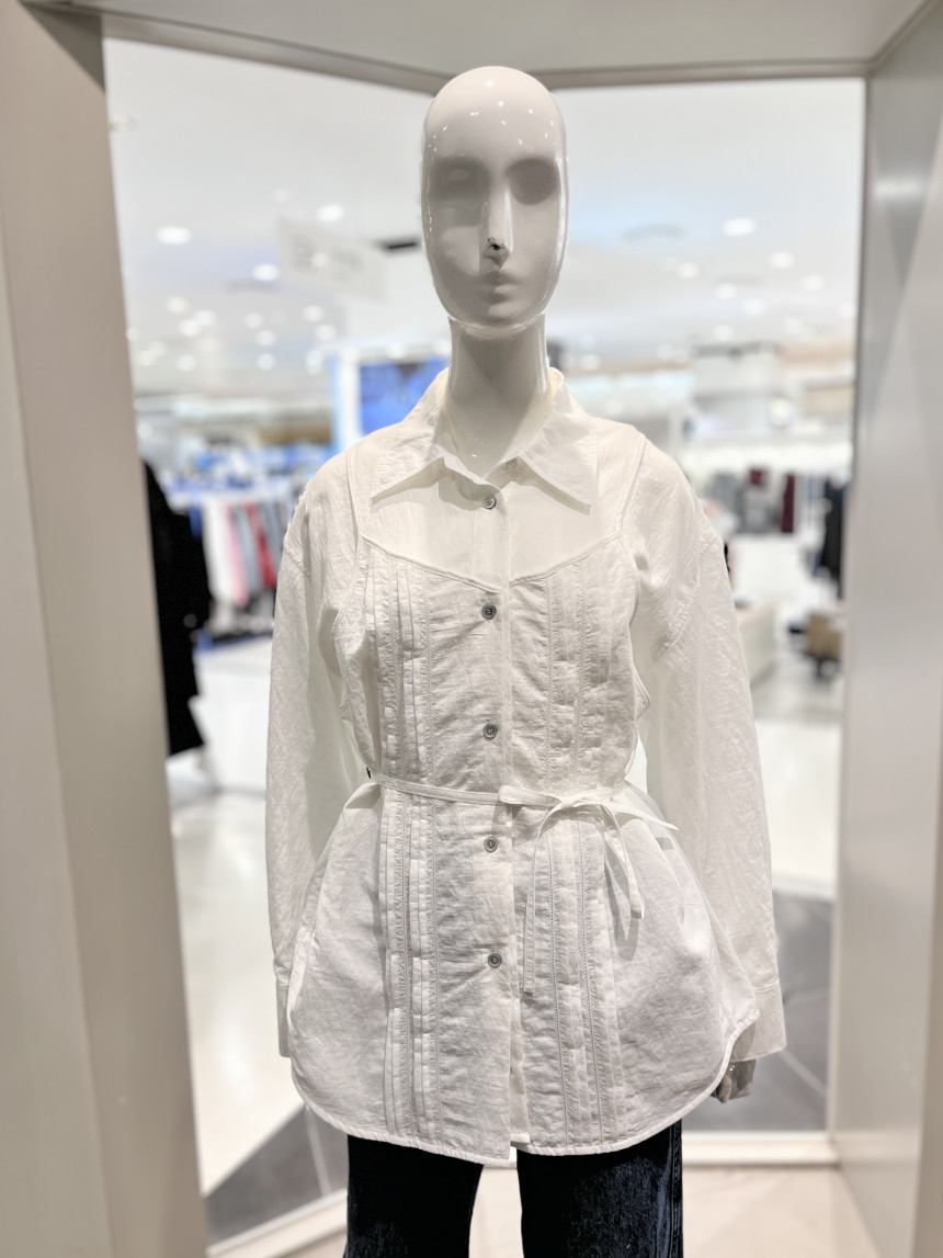 핀턱 디테일과 뒷판은 셔링으로 우아하고 페미닌한 느낌을 더해주며,