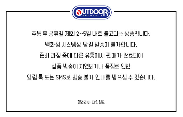 상품관련 상세문의처 : 갤러리아백화점(타임월드) 아웃도어프로덕츠 T.042-720-6783