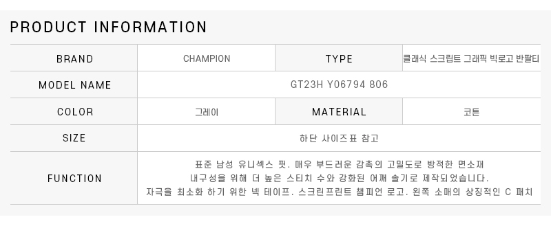 (현대Hmall)챔피온 남성 Classic Script Graphic 반팔 티셔츠(GT23H Y06794 806)