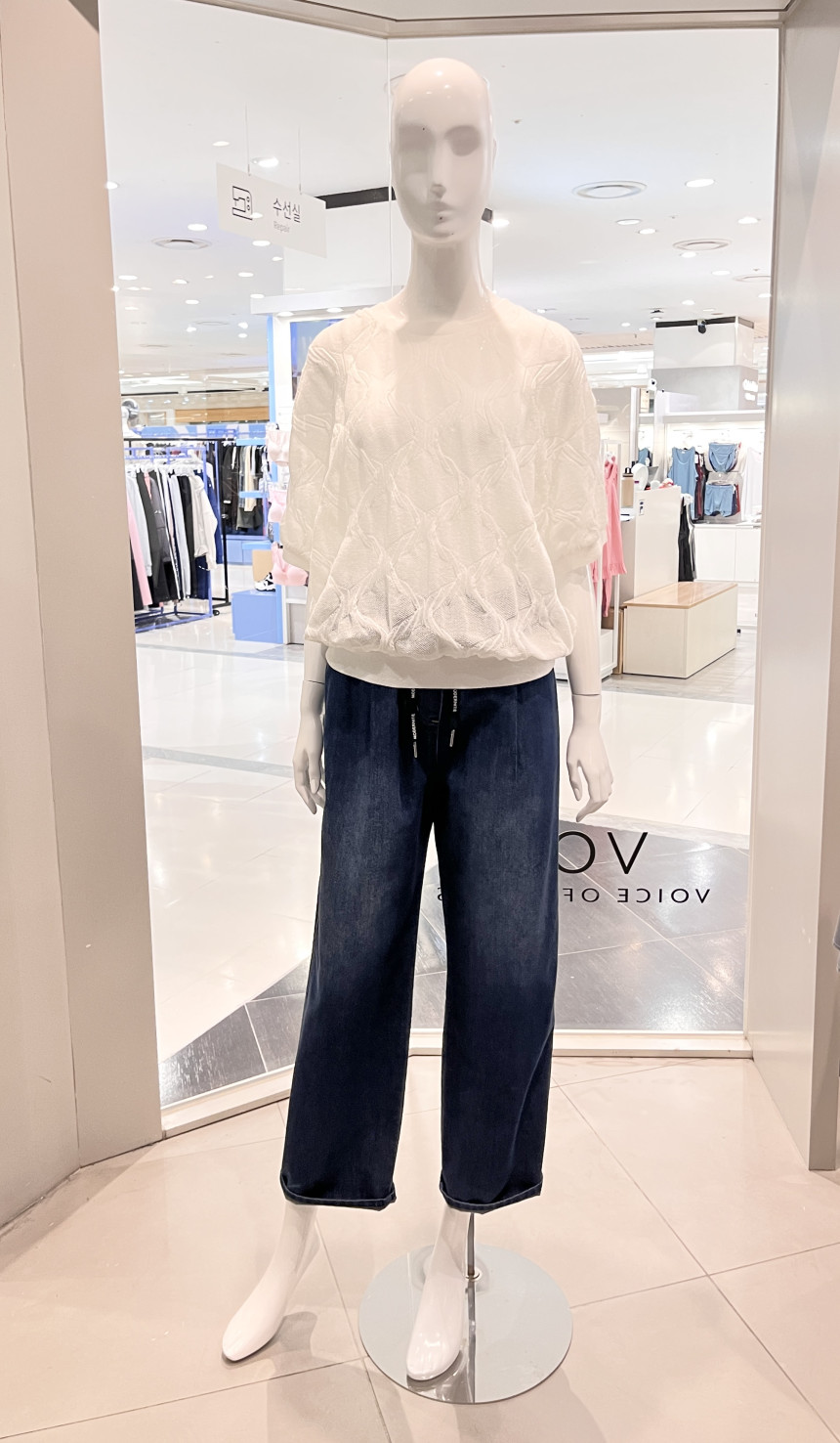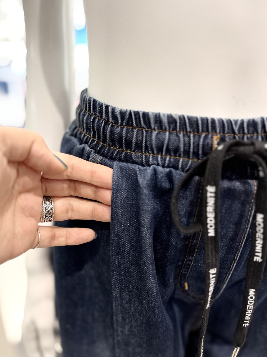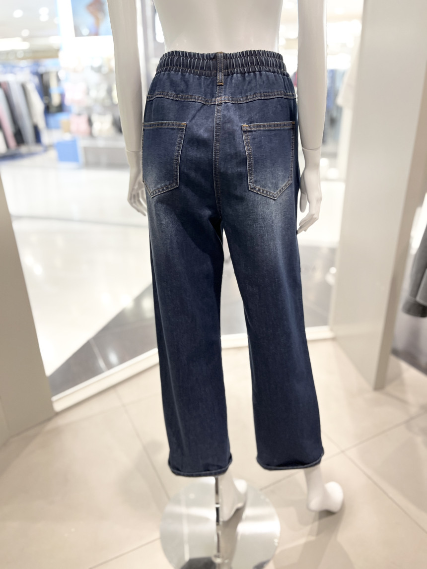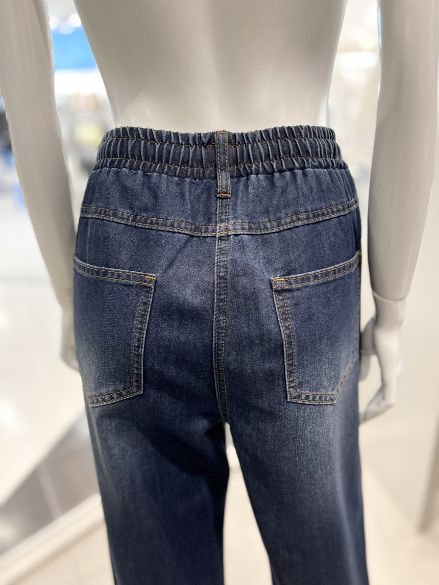 적당한 기장감에 세미 배기 핏이며, 허리에 밴딩으로 편안하게 착용이 가능합니다.