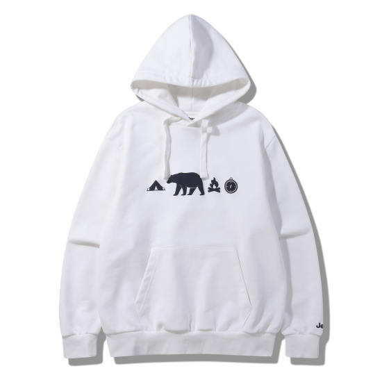 -실루엣 로고 발포 프린트로 포인트를 줌-후드에 로고 아일렛으로 포인트를 줌