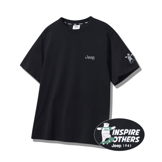 -상동직자수, 소매 곰 자수, 등판 곰과 레터링 프린트로 포인트를 줌-넥 끝 스티치로 탄탄함을 줌