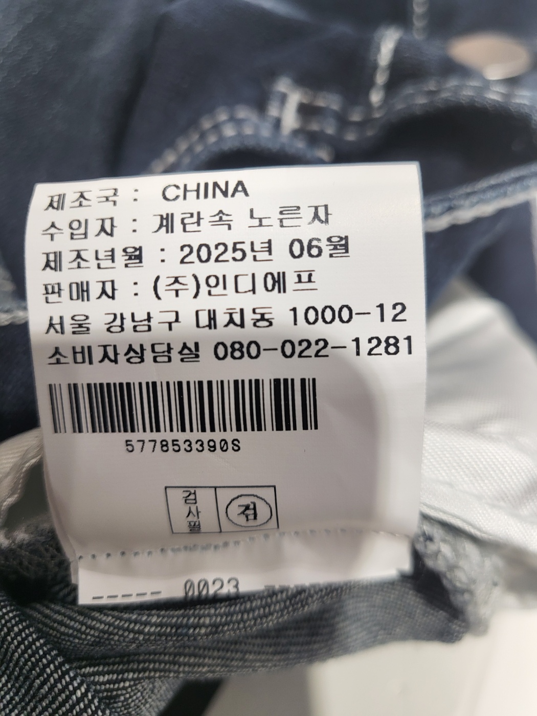 | 세탁방법 및 취급시 주의사항 | 중성세탁 (상품케어라벨표기) |