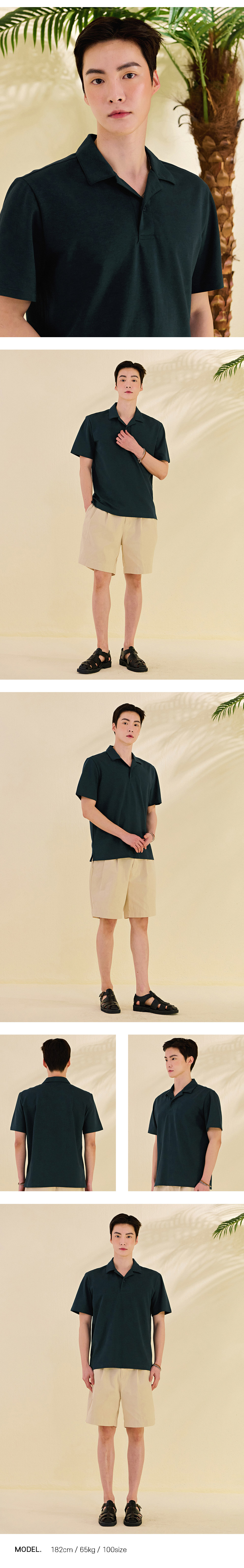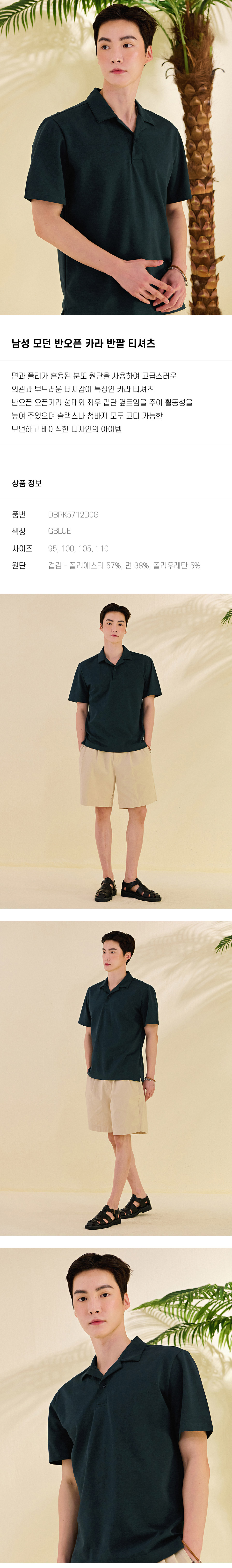 하프클럽/체이스컬트 남성 모던 반오픈 카라 반팔 티셔츠-DBRK5712D0G