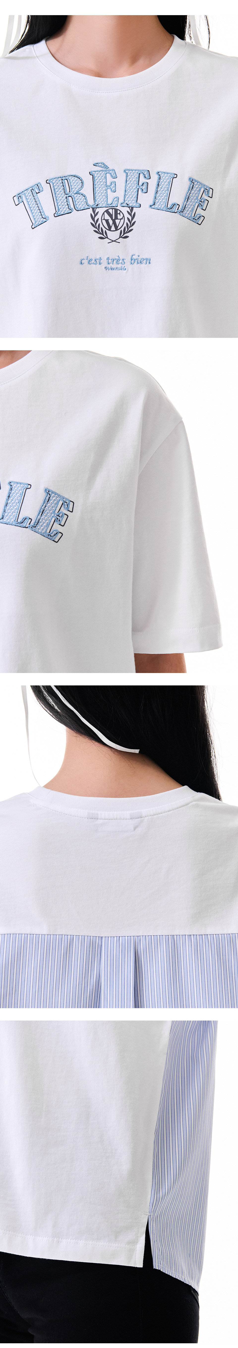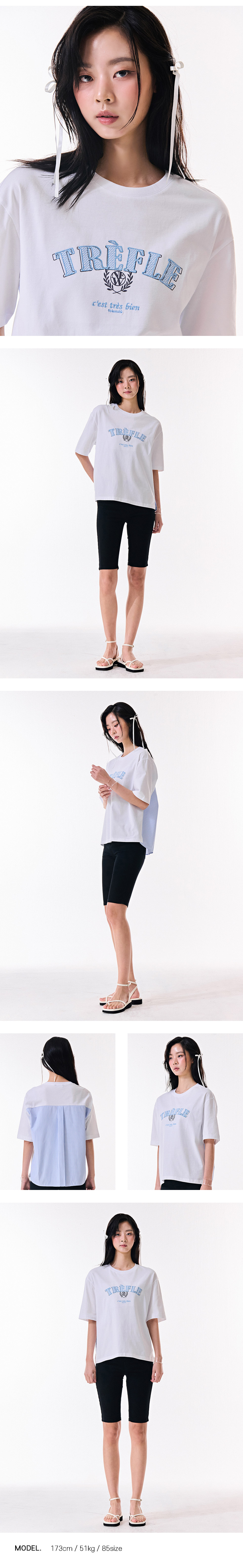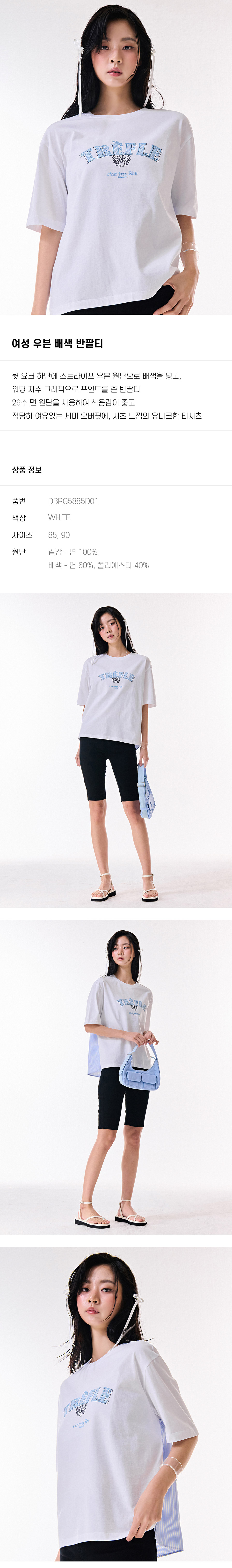 하프클럽/체이스컬트 여성 우븐 배색 반팔 티셔츠-DBRG5885D01