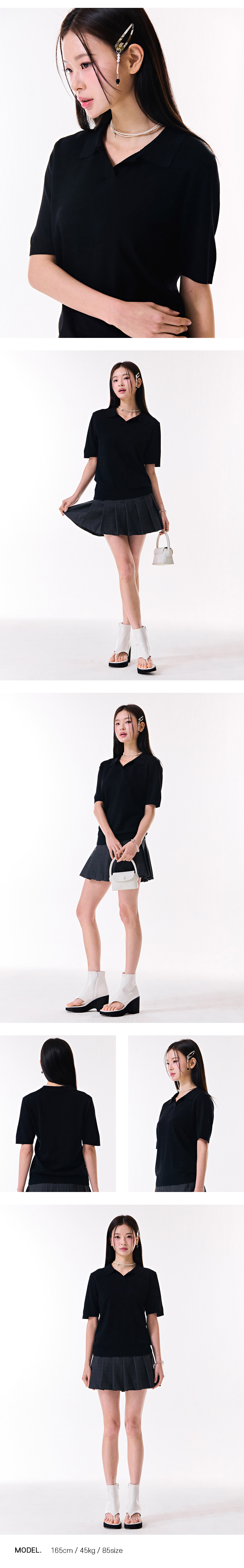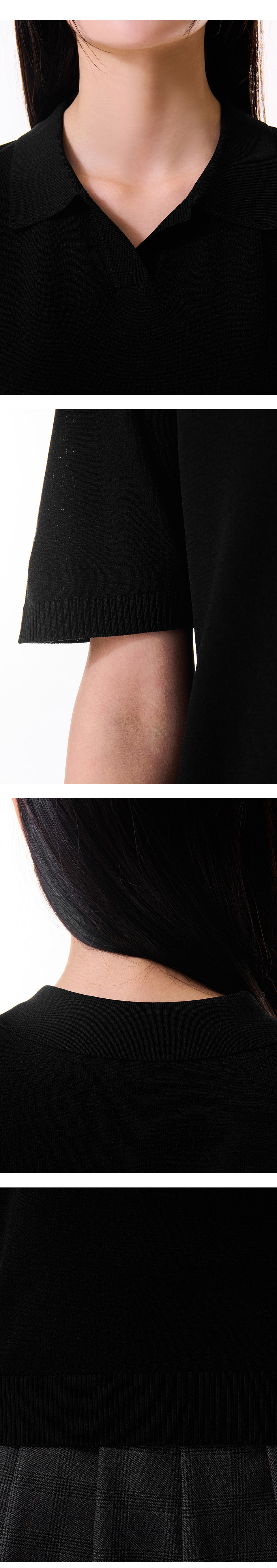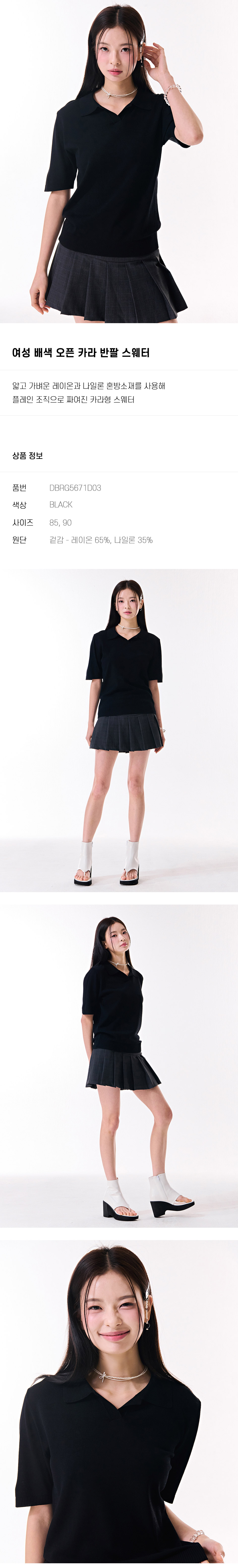 하프클럽/체이스컬트 여성 배색 오픈 카라 반팔 스웨터-DBRG5671D03
