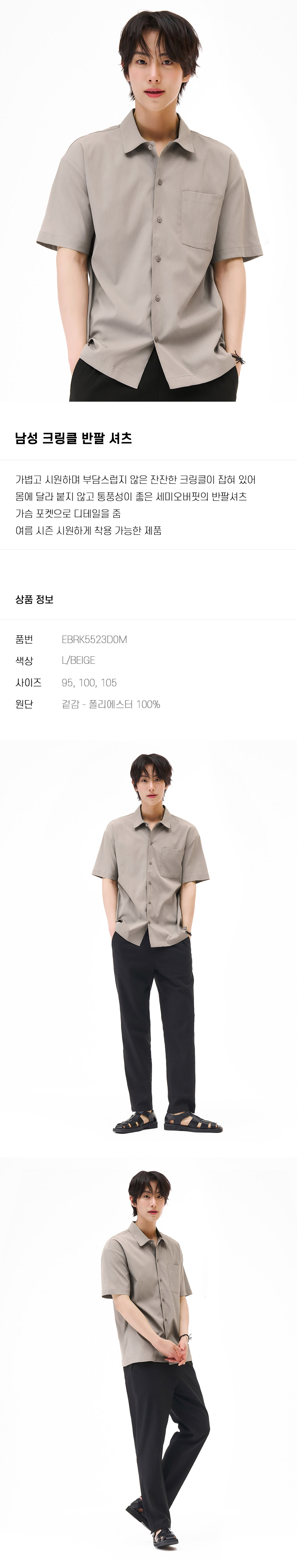 하프클럽/체이스컬트 M 크링클 반팔 셔츠