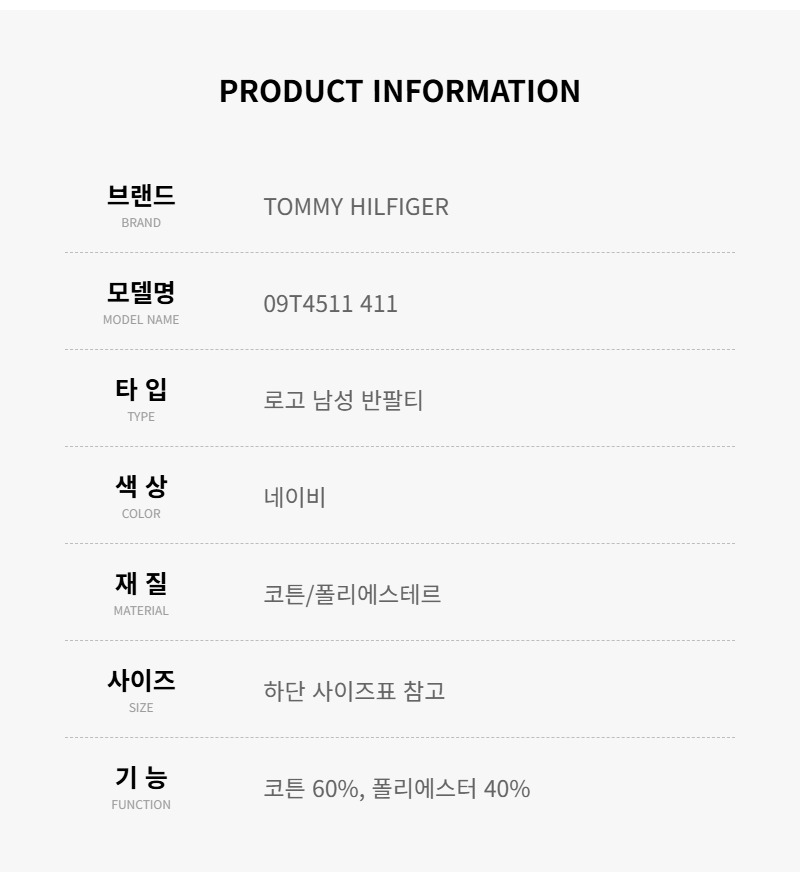 (현대Hmall)타미힐피거 남성 Logo 로고 반팔 티셔츠(09T4511 411)