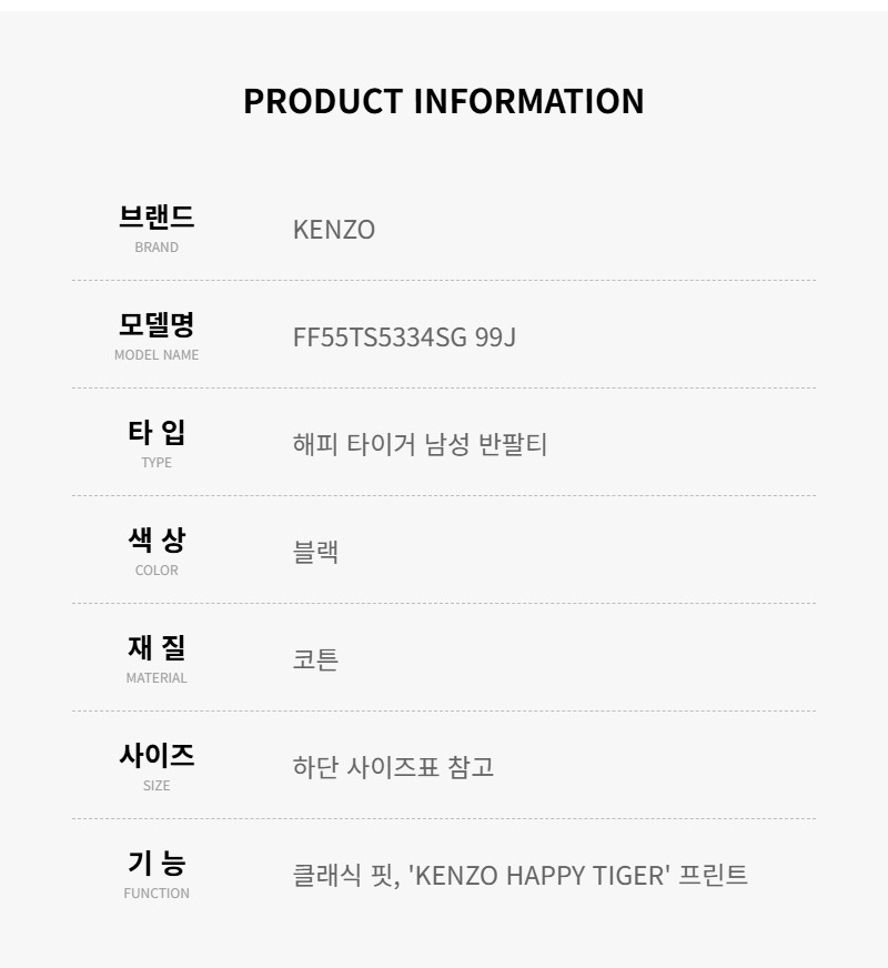 (현대Hmall)겐조 남성 해피 타이거 반팔 티셔츠(FF55TS5334SG 99J)