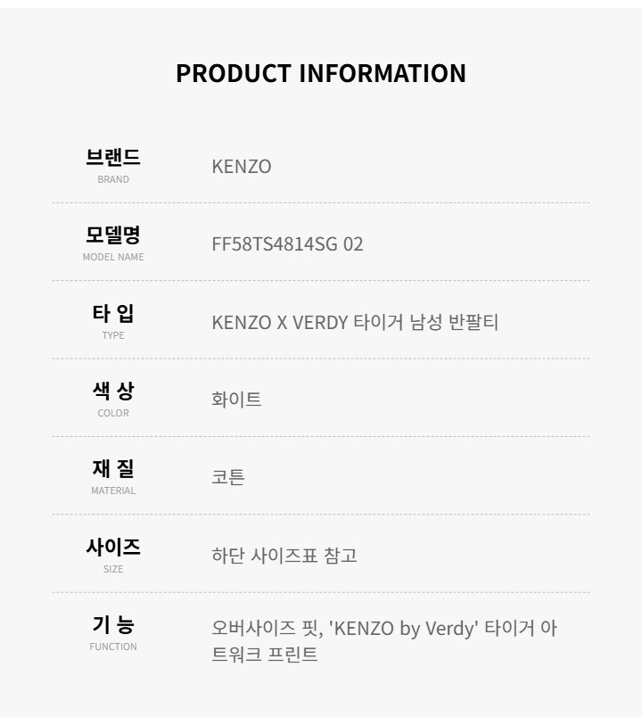 (현대Hmall)겐조 남성 VERDY 베르디 반팔 티셔츠(FF58TS4814SG 02)