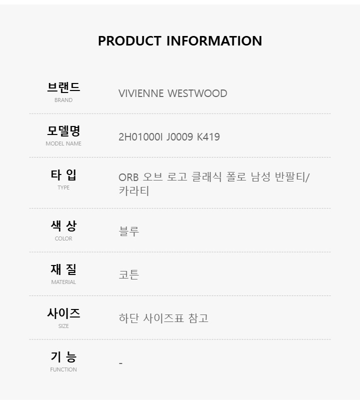 (현대Hmall)비비안웨스트우드 남성 ORB 반팔 카라 티셔츠(2H01000I J0009 K419)