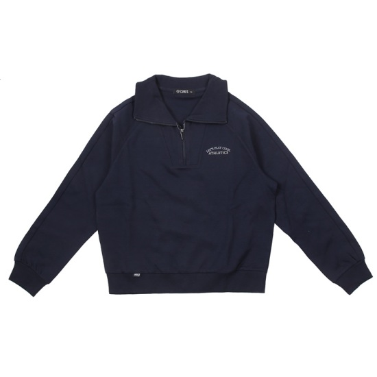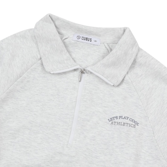 2024년 봄 신상품이며 반집업 티셔츠이며 편하고 무난하며 소매 끝단 부분에 시보리가 있어 활동성이 좋으며 앞 가슴 부분에 레터링으로 포인트를 주었으며