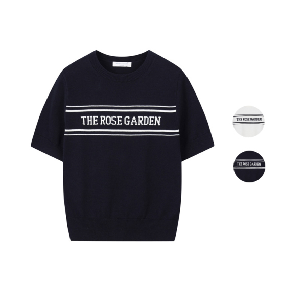 여성) 원더쿨 라운드넥 자카드 워딩 반팔 니트 PHF4ET2100