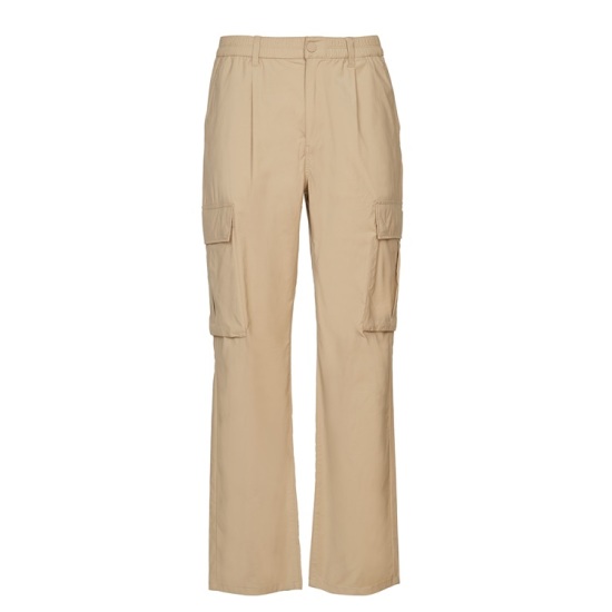 코디의 연출이 자연스럽게 잘 어울리며 착용자의 직임에 따라 활동성이 활동성이 좋은 스타일의 이지 카고 테이퍼드 스판 면바지