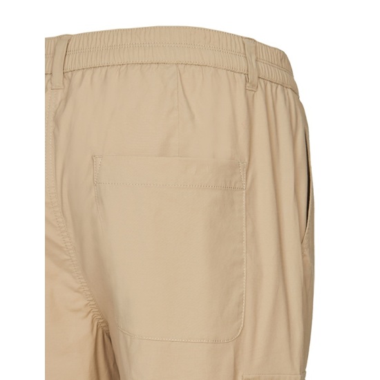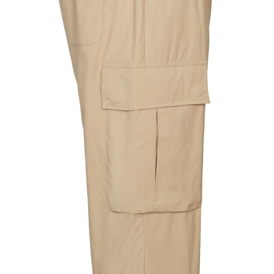 2025년 봄 신상품이며 허리 부분이 밴드로 되어 있는 스타일의 카고 테이퍼드 스판 면바지이며 편하고 무난하며 때로는 여름에도 착용 가능하며