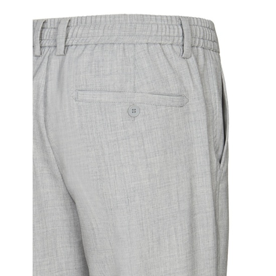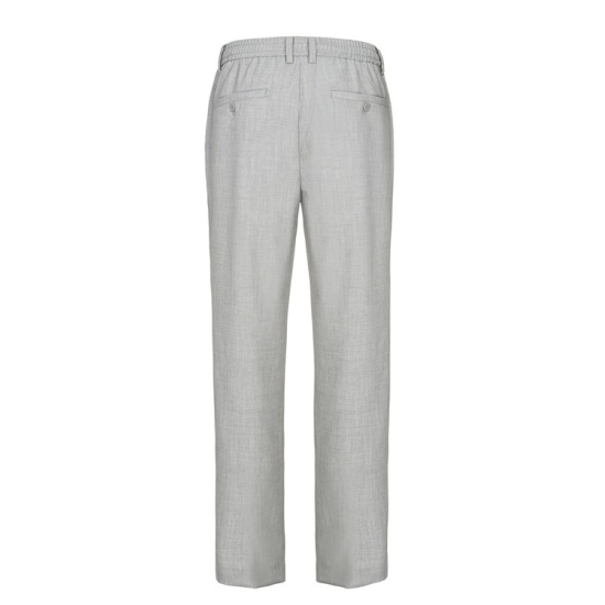 2025년 봄 신상품이며 때로는 여름에도 착용 가능한 스타일의 슬랙스 스판 바지이며 허리 부분이 밴드로 되어 있는 스타일의 슬랙스 스판