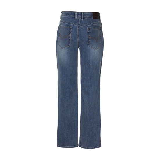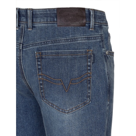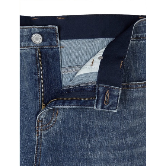 청바지이며 연령대 상관없이 모두 착용 가능하며 착용자의 움직임에 따라 활동성이 좋은 스타일의 속밴드 슬림 스트레이트 스판 청바지