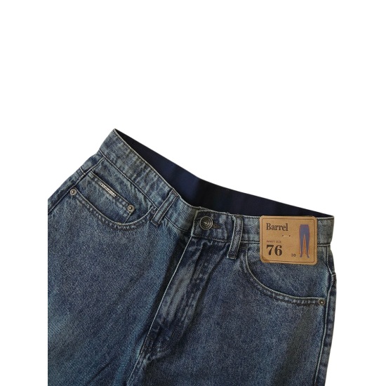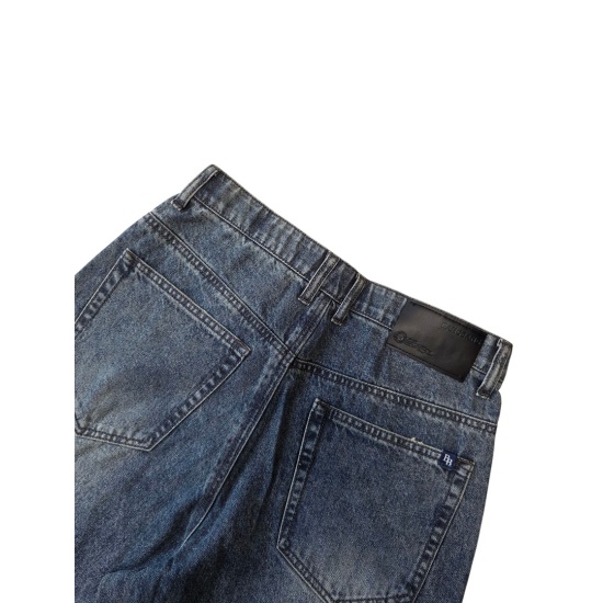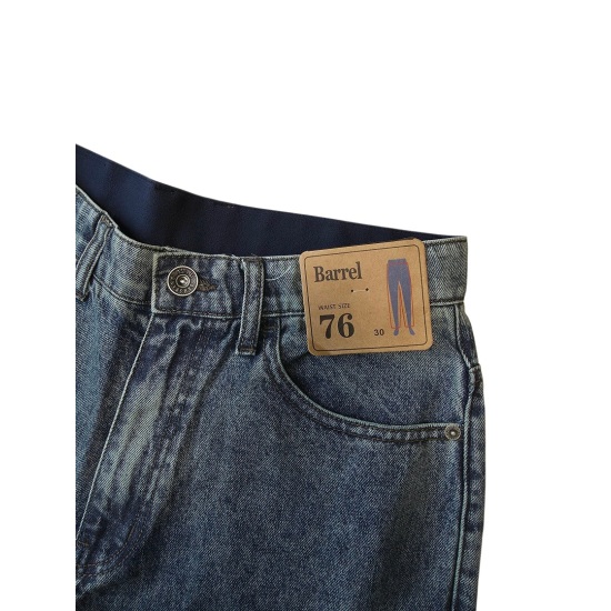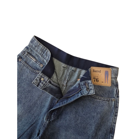 자연스러운 워싱 처리로 다양하게 코디 착용하기 좋은 남녀공용 속밴드 배럴핏 청바지 입니다