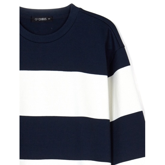 활동성이 좋은 스타일의 투톤 배색 맨투맨 티셔츠