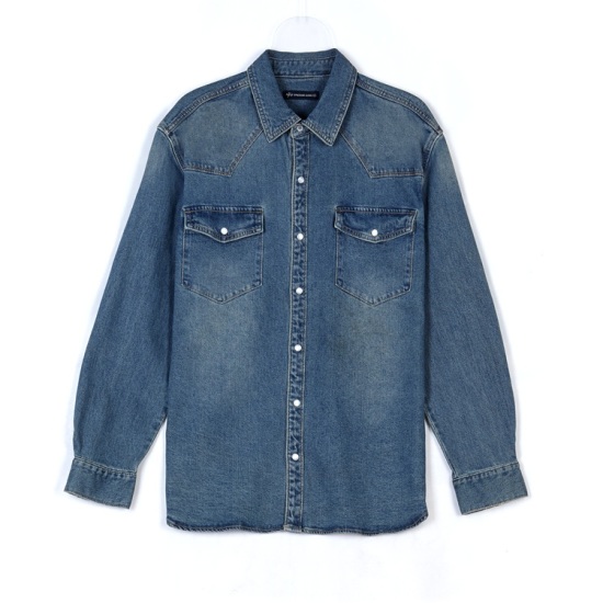 멋을 주었으며 연령대 상관없이 모두 착용 가능하며 착용자의 움직임에 따라 활동성이 좋은 스타일의 베이직 스타일의 데님 남방