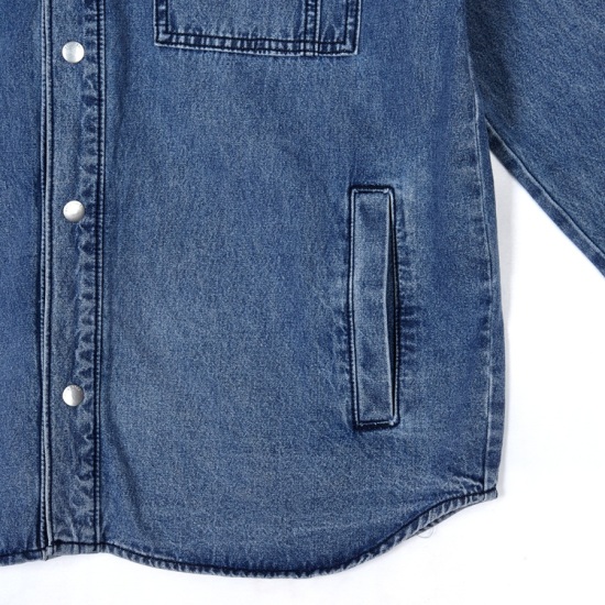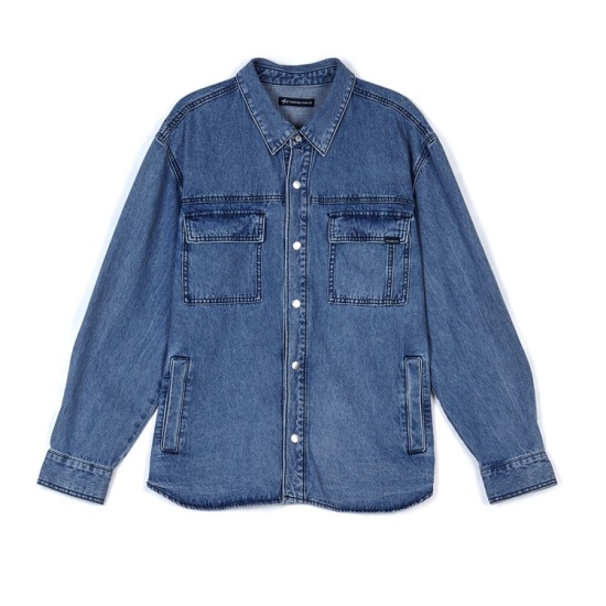 다양하게 잘 어울리는 스타일의 데님 남방이며 착용자의 움직임에 따라 활동성이 좋은 스타일의 포켓 포인트 오버핏 데님 남방