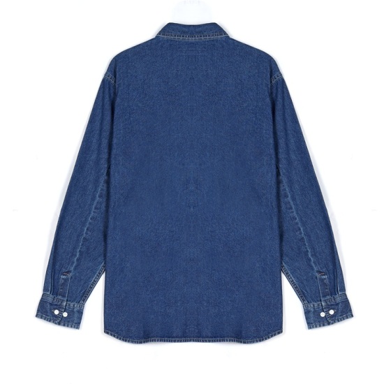 2025년 가을 신상품이며 오버핏 스타일의 데님 긴팔 남방이여 앞 가슴 부분에 포켓으로 포인트를 주었으며 때로는 오픈해서 셔켓 남방