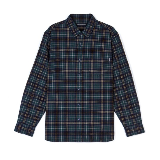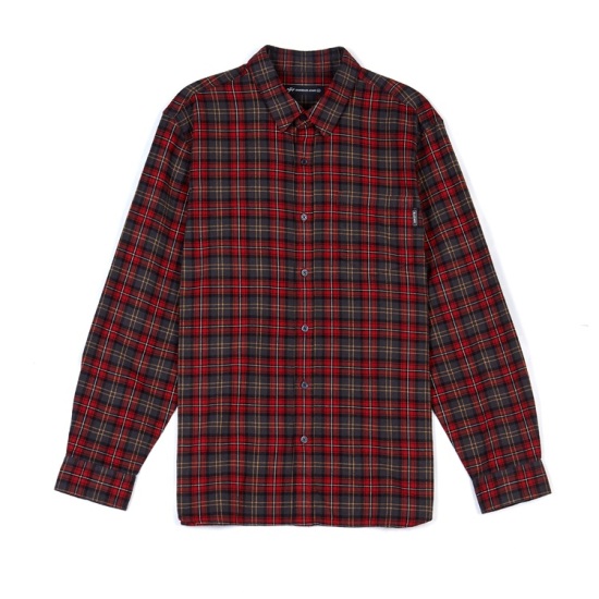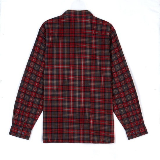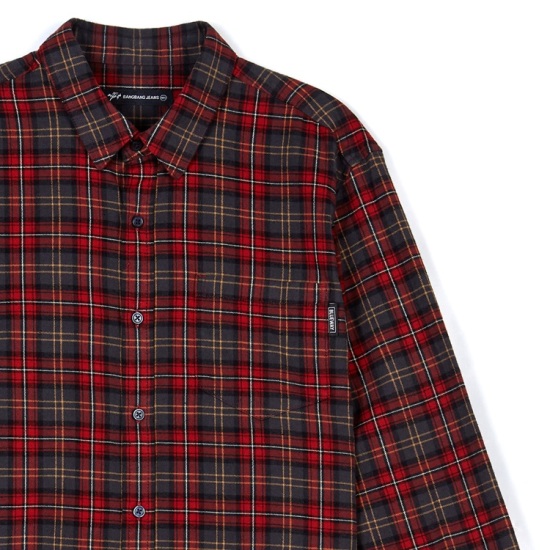 체크 남방이며 착용자의 움직임에 따라 활동성이 좋은 스타일의 포켓 포인트 체크 긴팔 남방