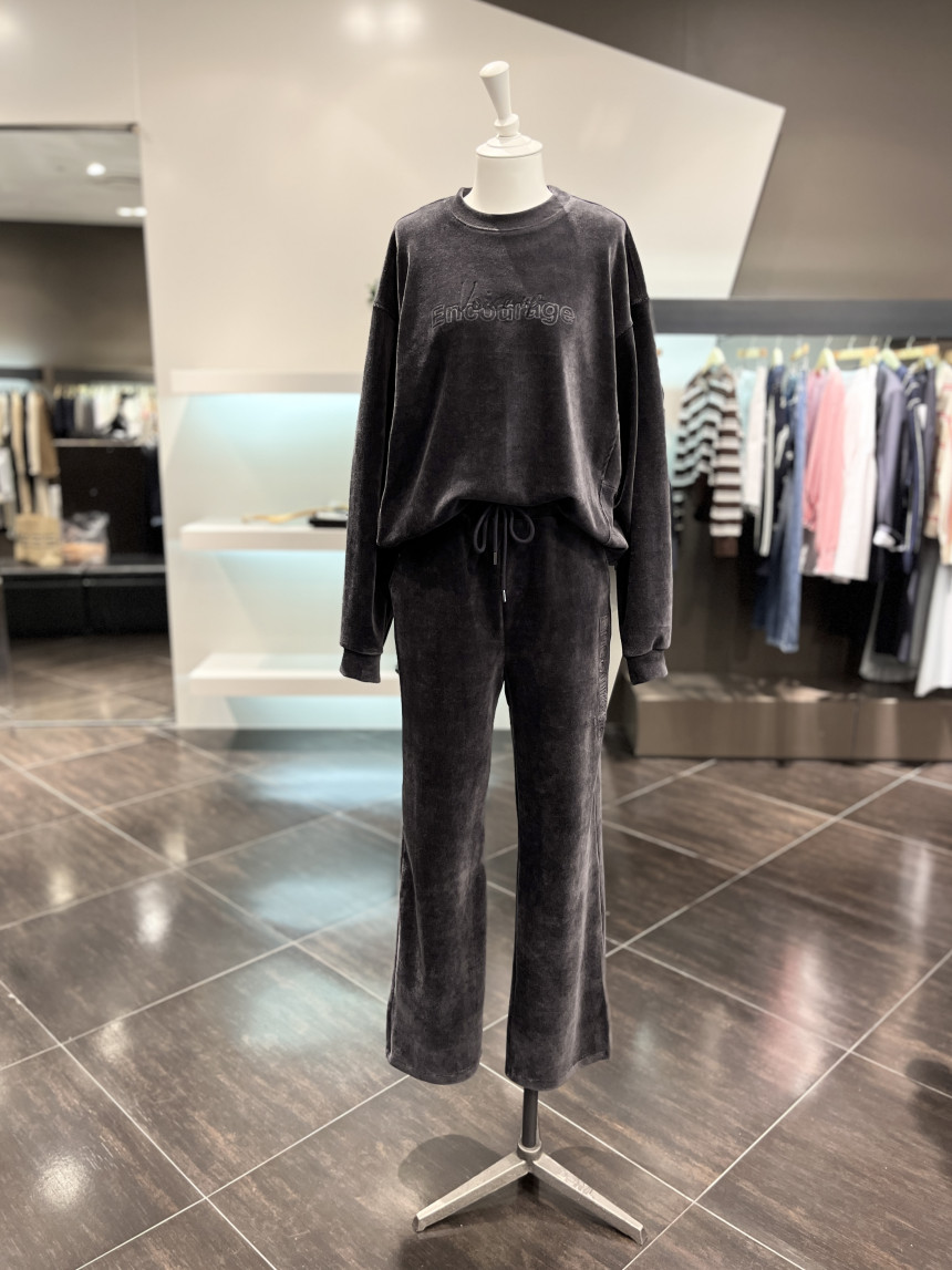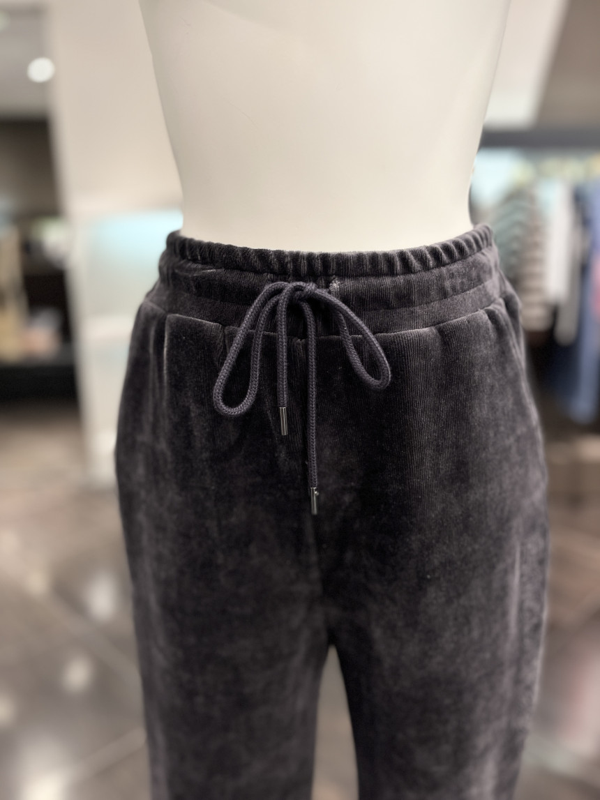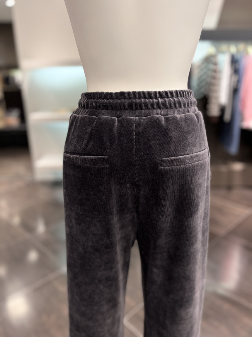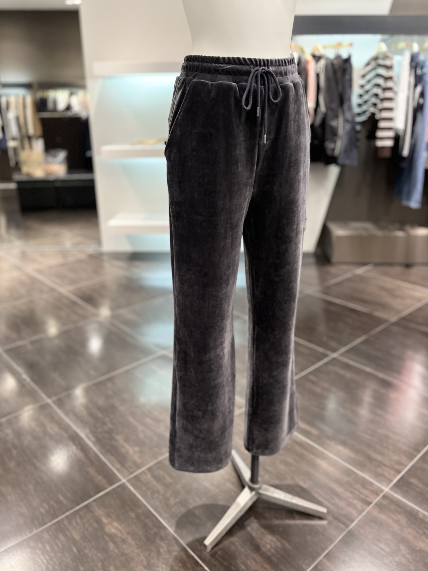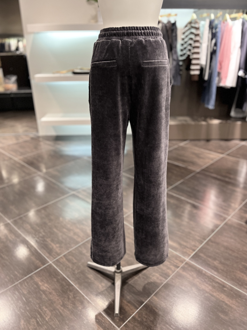 톤다운된 컬러감과 부드러운 벨벳 텍스처로 이루어져 고급스러운 분위기를 전해주는 팬츠입니다.