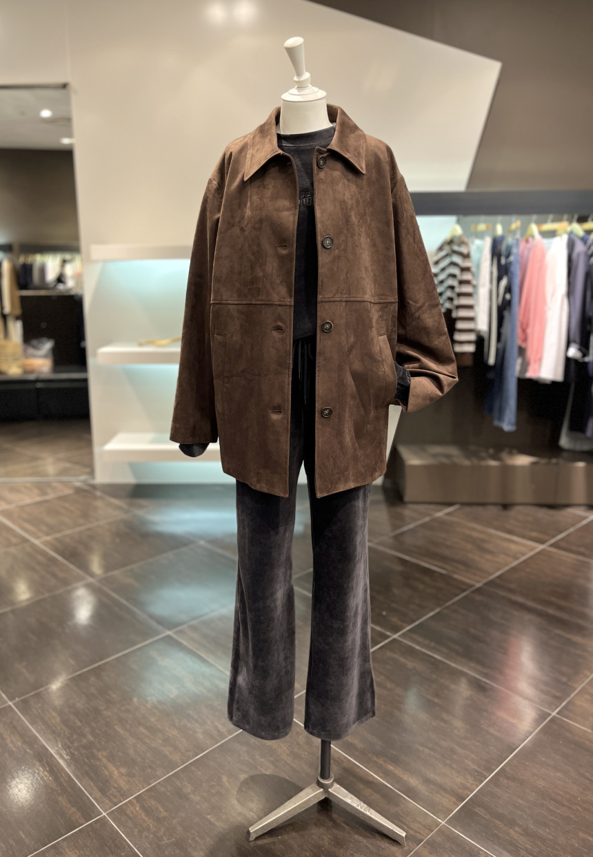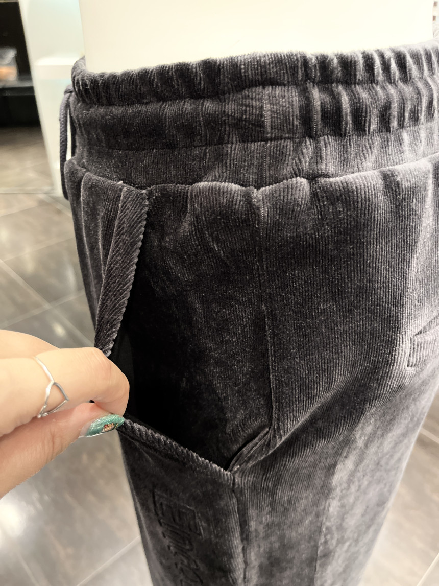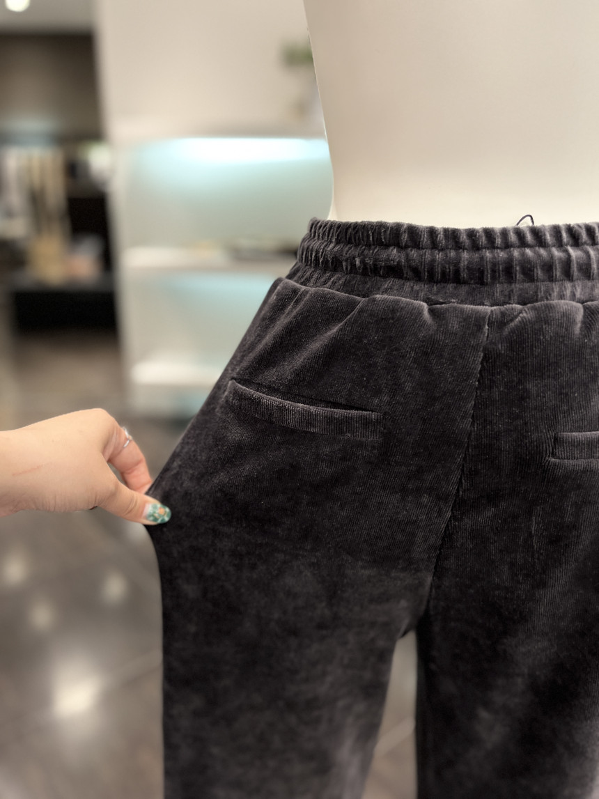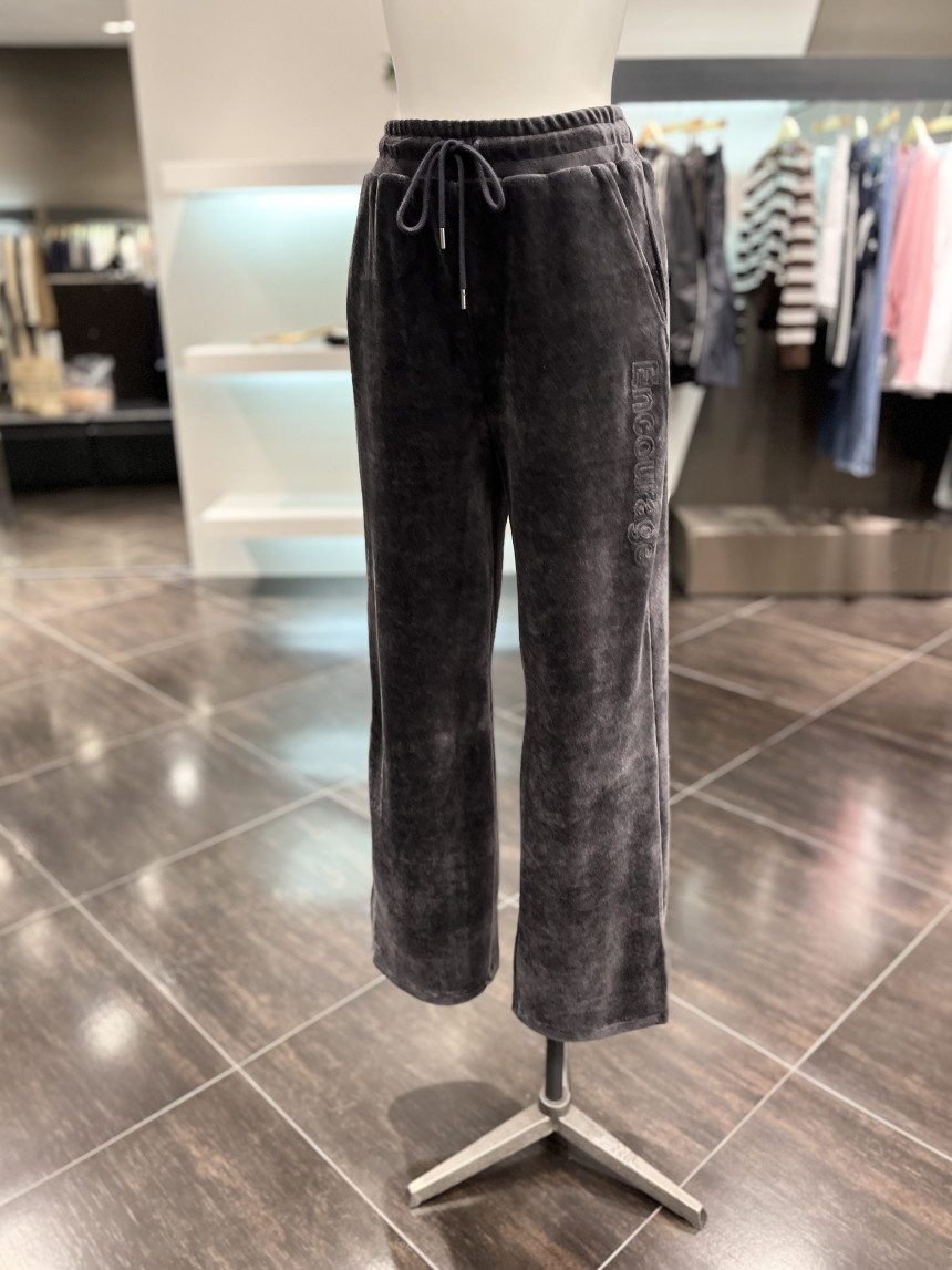 톤다운된 컬러감과 부드러운 벨벳 텍스처로 이루어져 고급스러운 분위기를 전해주는 팬츠입니다.