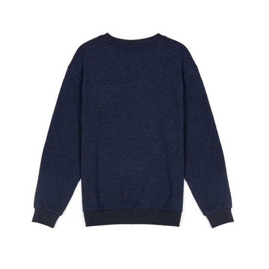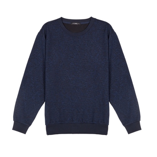 스타일의 맨투맨 티셔츠이며 착용자의 움직임에 따라 활동성이 좋은 스타일의 빅싸이즈 엠보싱 맨투맨 긴팔 티셔츠