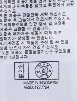 | 세탁방법 및 취급시 주의사항 | 본 제품은 손세탁 하십시오.(케어라벨참고) |
