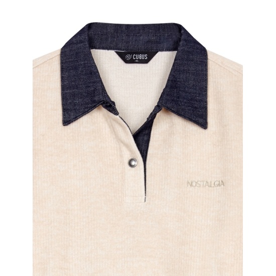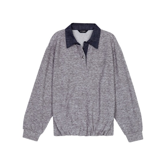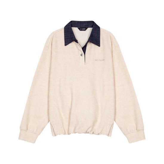 2025년 가을 신상품이며 때로는 겨울에도 이너티로 아주 적합한 스타일의 데님 카라 배색 긴팔 티셔츠이며 편하고 무난하며