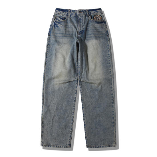 (롯데백화점)남여공용) 도밍고 워싱 인심 턱 와이드 데님 팬츠 바지 JQ3DPU531