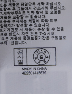 | 세탁방법 및 취급시 주의사항 | 본 제품은 손세탁 하십시오.(케어라벨참고) |