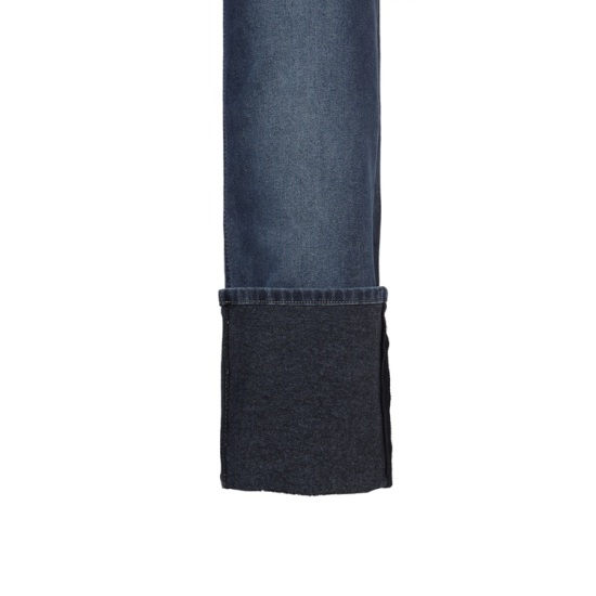 스판 청바지이며 데님 원단 안쪽에 기모 가공을 더하여 포근한 터치감과 보온효과가 뛰_어난 청바지이며 또한 편안한 스판이 함유되어