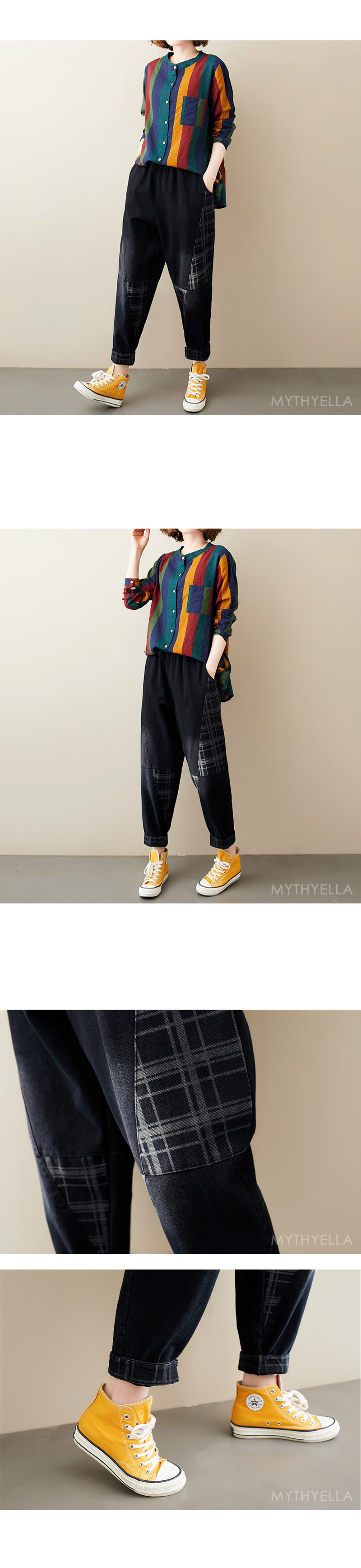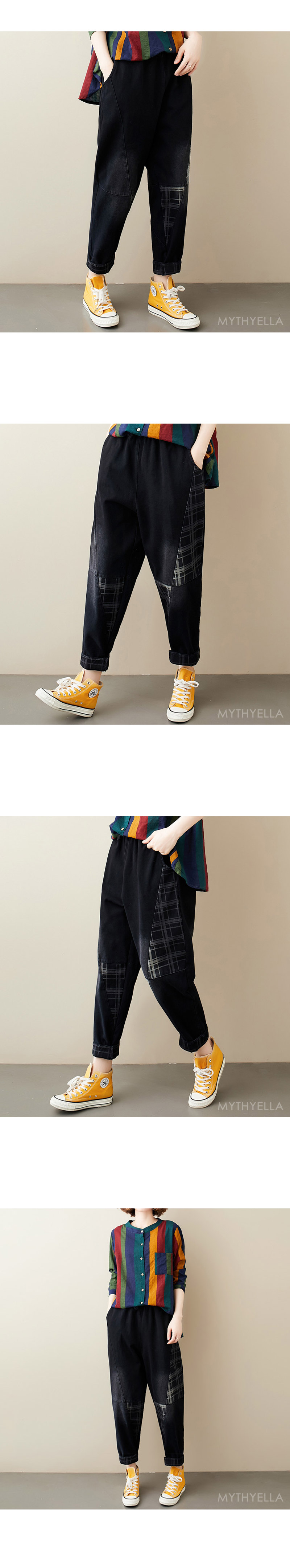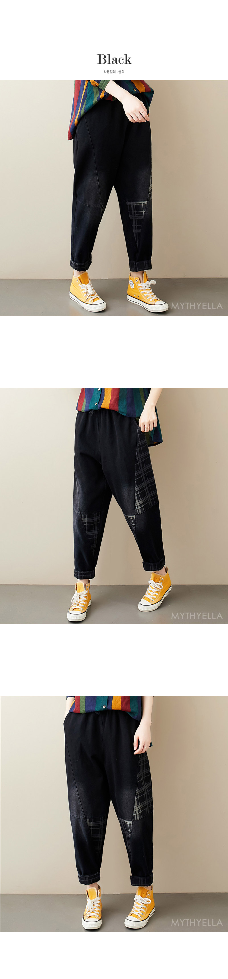 (현대Hmall)A주미 패턴 배색 배기 데님팬츠