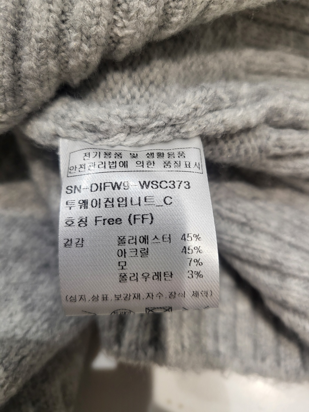 | 제품소재 | 폴리에스터 45% 아크릴 45% 모 7% 폴리우레탄 3% |