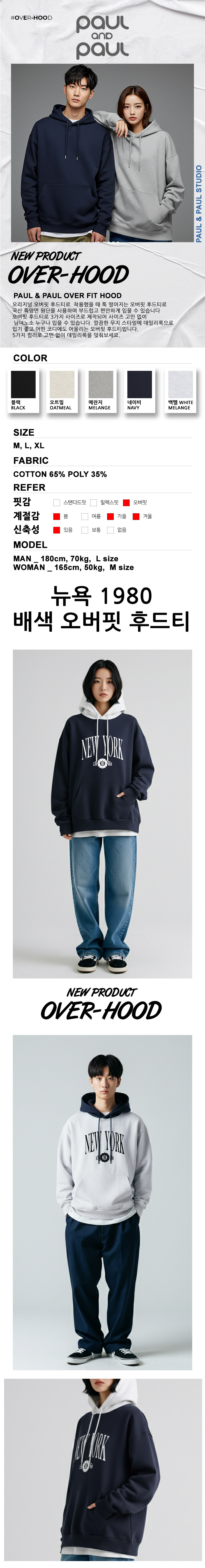 뉴욕 1980 오버핏 배색 후드티 남여공용 2컬러