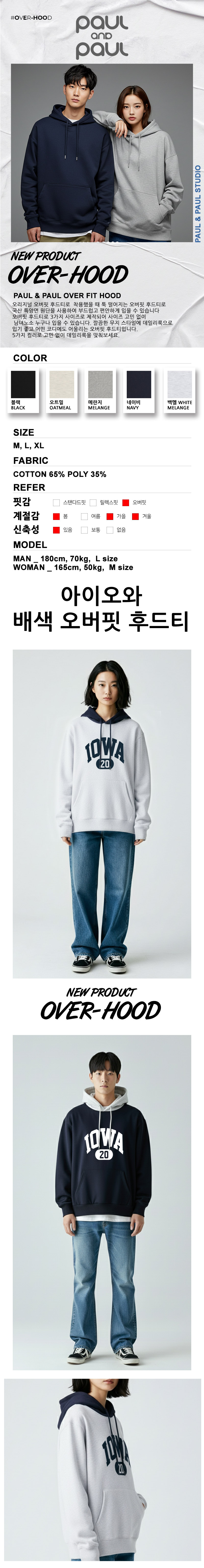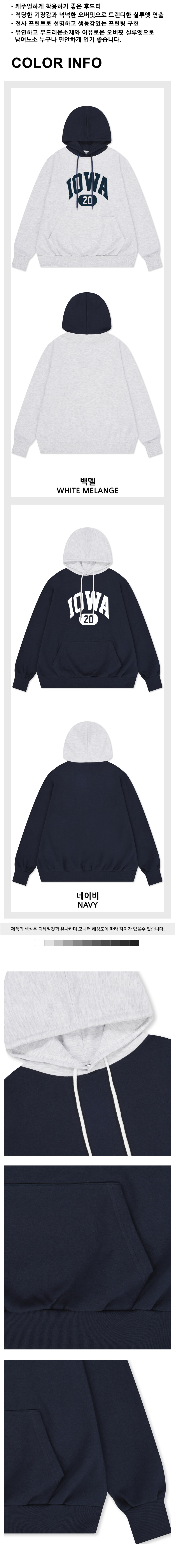 아이오와 오버핏 배색 후드티 남여공용 2컬러