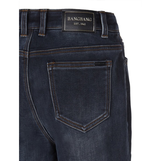 스타일의 스판 청바지이며 데님 원단 안쪽에 기모 가공을 더하여 포근한 터치감과 보온효과가 뛰_어난 청바지이며 또한 편안한 스판이