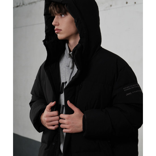 -편안하게 떨어지는 핏감의 롱 기장 다운 점퍼 입니다.