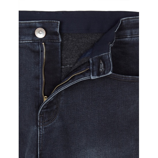 스판 청바지이며 데님 원단 안쪽에 기모 가공을 더하여 포근한 터치감과 보온효과가 뛰_어난 청바지이며 또한 편안한 스판과 레이온
