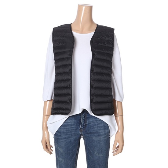 2019년 가을 겨울 신상품이며 초경량 구스다운 조끼이며 옆선 부분이 사선으로 되어 있어 날씬하게 보여주는 효과가 있으며 이너로도 착용가능하며 연령대 상관없이 모두 착용가능하며 착용자의 움직임에 따라 활동성이 좋은 스타일의 초경량 구스 다운 조끼 | |