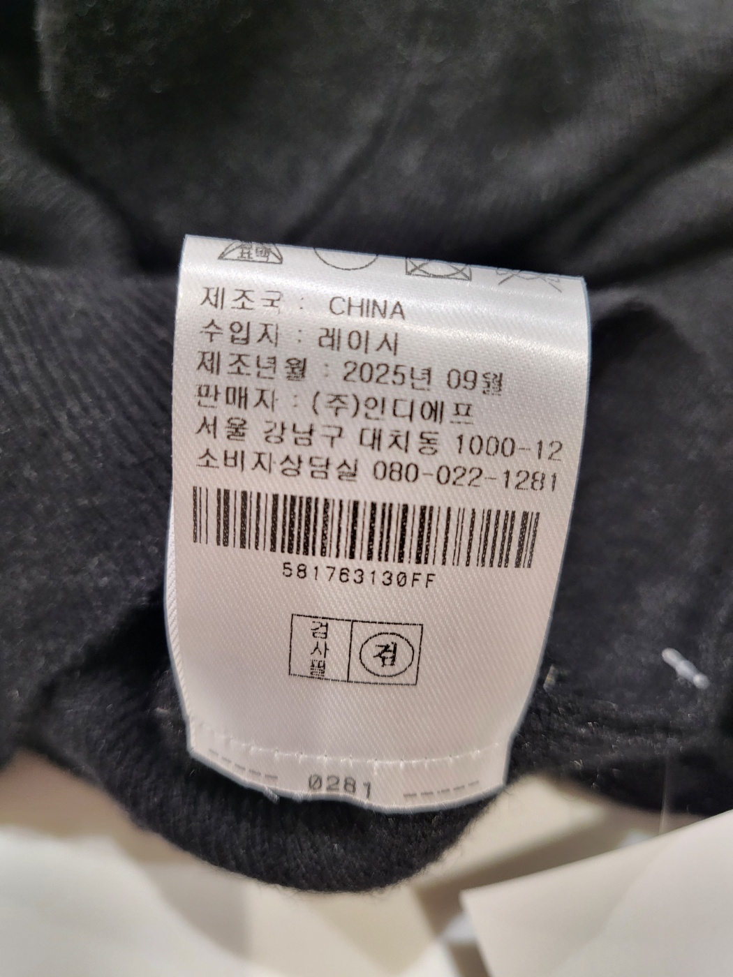 | 세탁방법 및 취급시 주의사항 | 중성세탁 (상품케어라벨표기) |