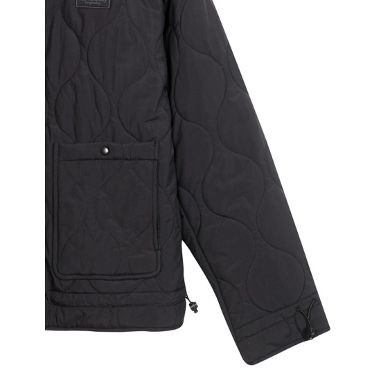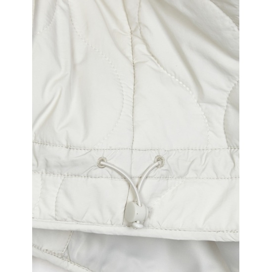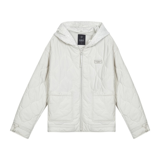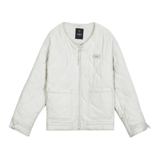 친환경 소재로 만든 경량 퀄팅 점퍼이며 무봉제 기술를 적용한 튜브 원단을 사용하여 봉제선 사이 충전재 빠짐을 최소화한 제품으로 보온력이