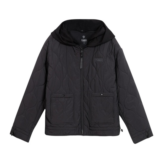 움직임에 따라 활동성이 좋은 스타일의 후드 탈부착 신클라우드 점퍼